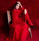 Red Long chiffon dress with pleat detail 94303 50% off