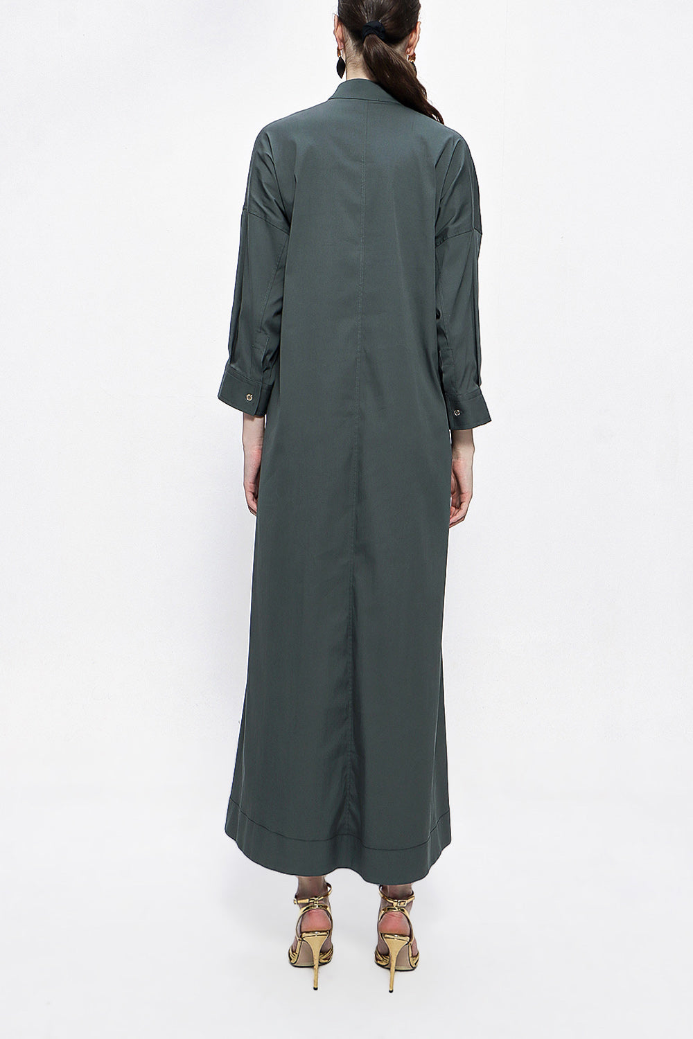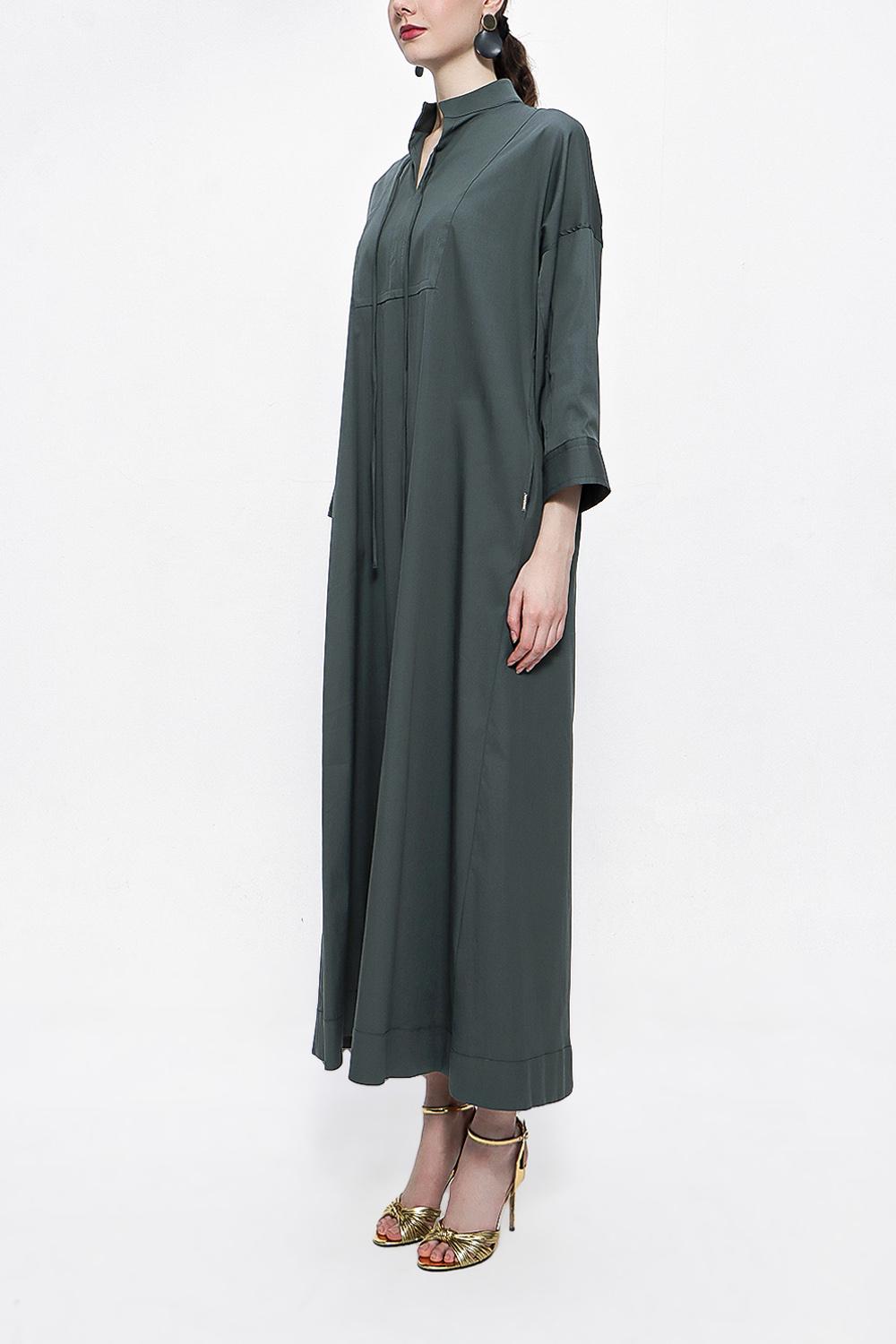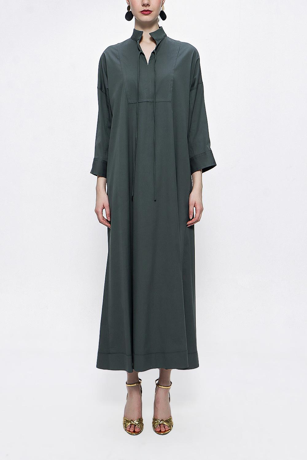 Anthracite Lace-up wide cut poplin dress 94072