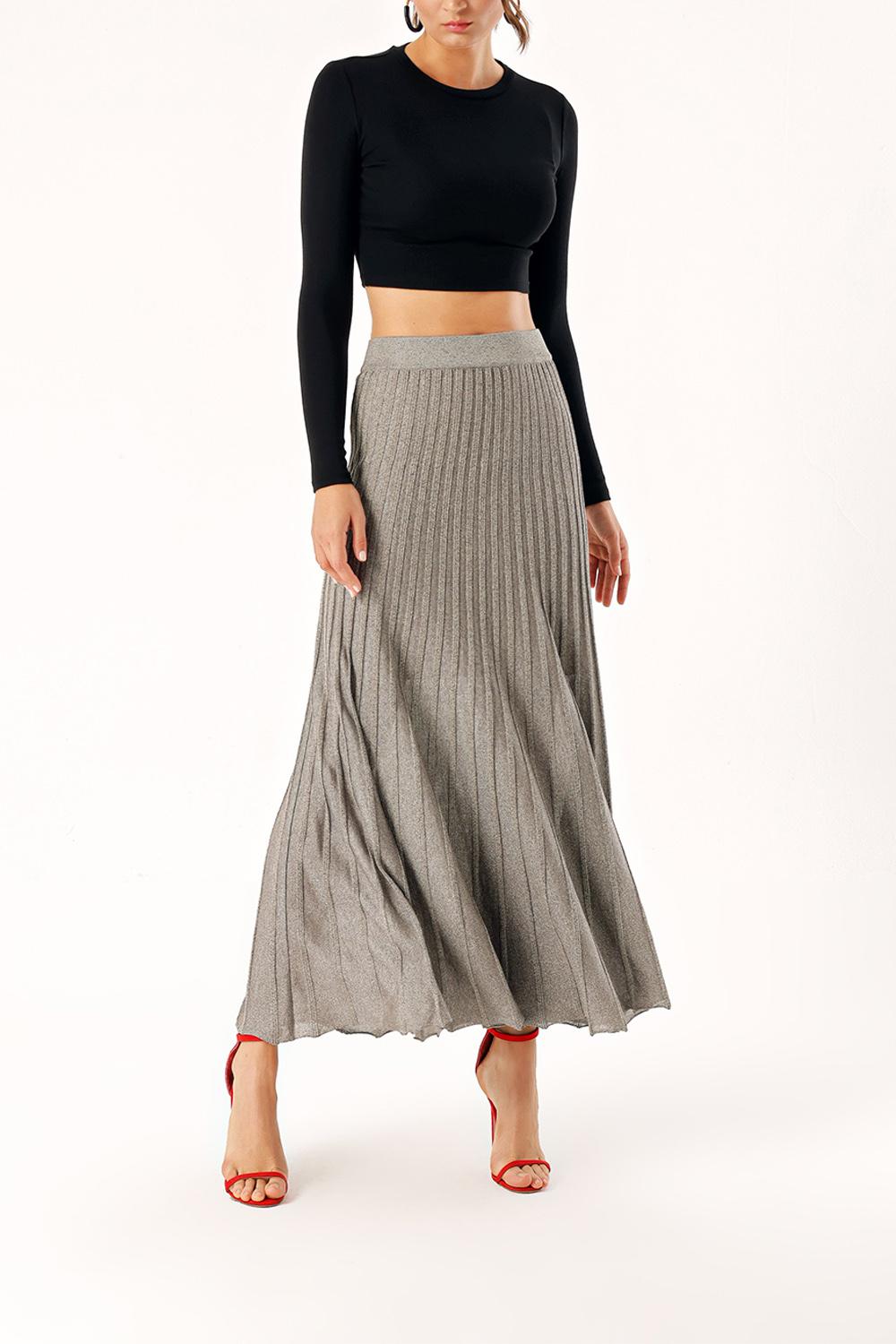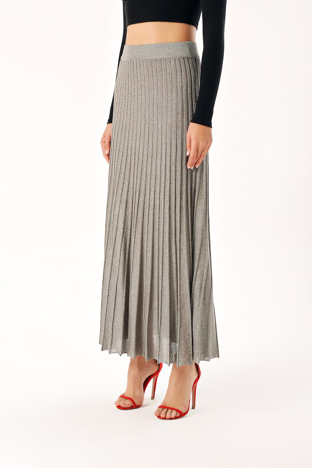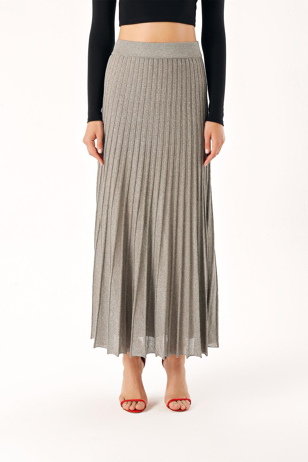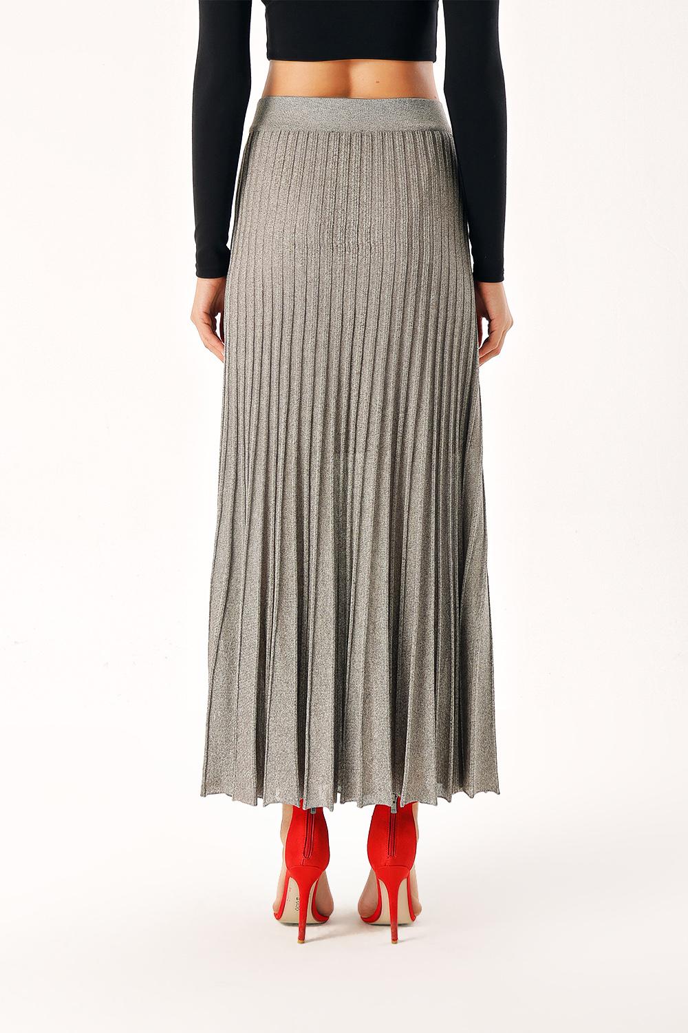 Anthracite Lined pleated midi knit skirt 28854
