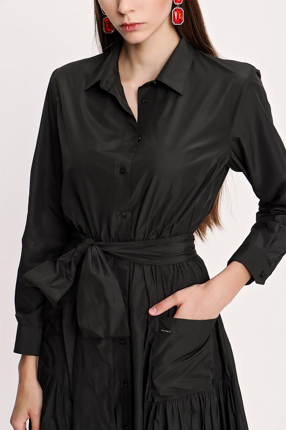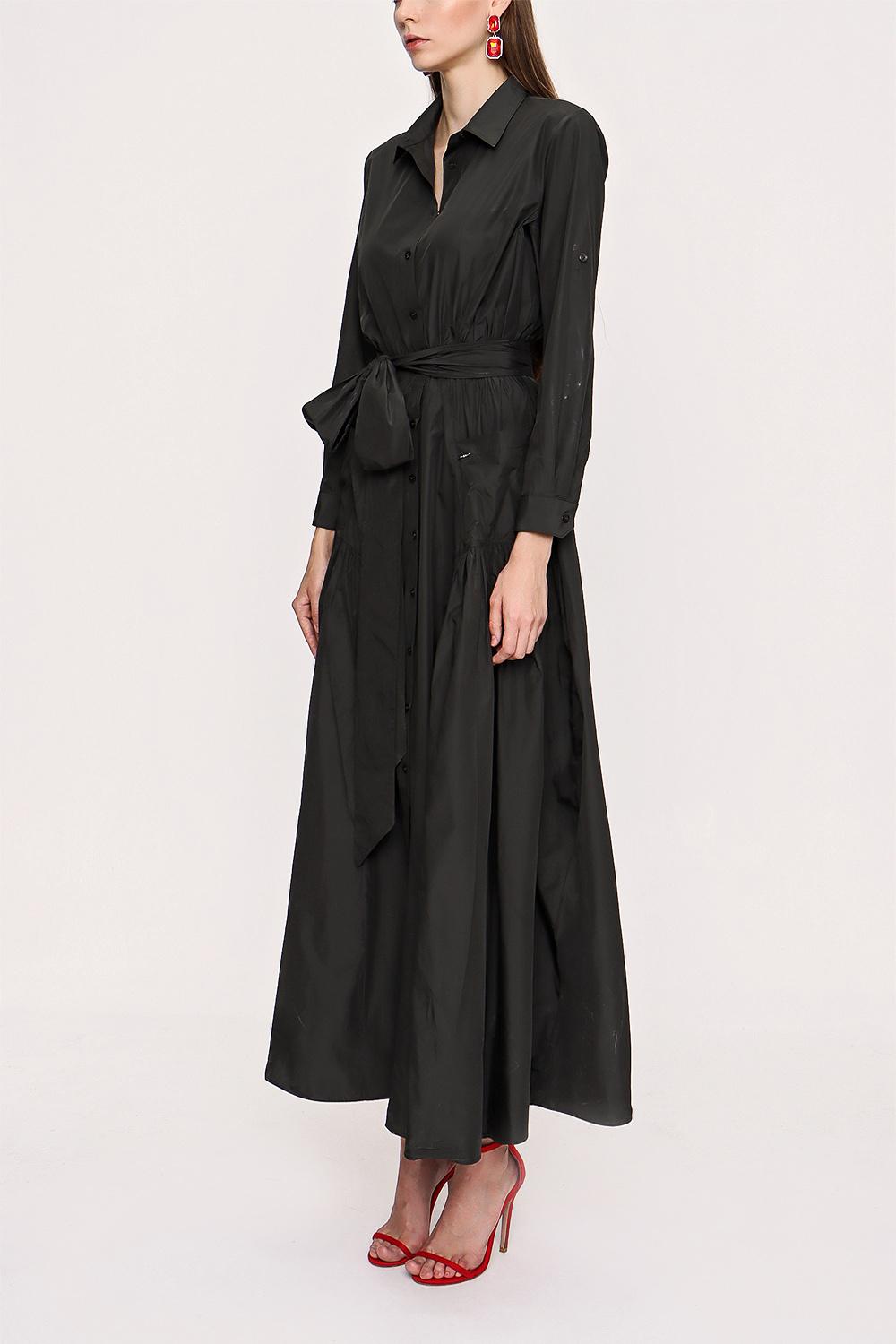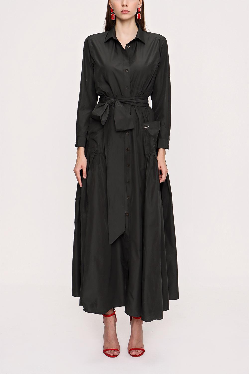 Antrasit Büzgülü Uzun Tafta Elbise 94032