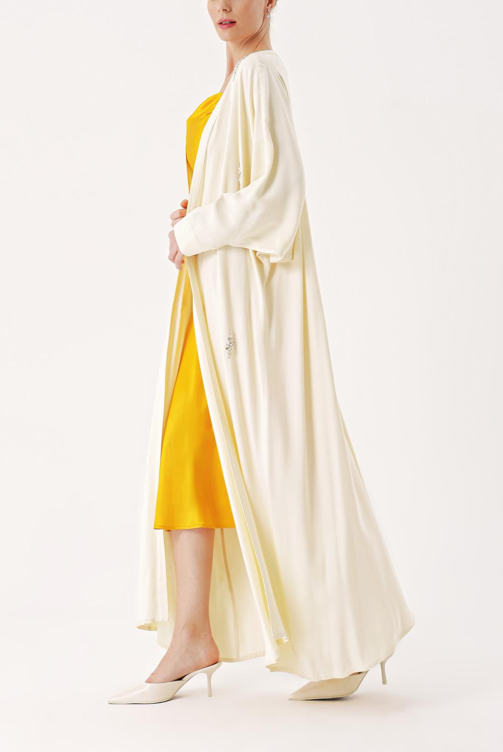 Beige Crystal Stone embroidered long sleeve caftan 94467