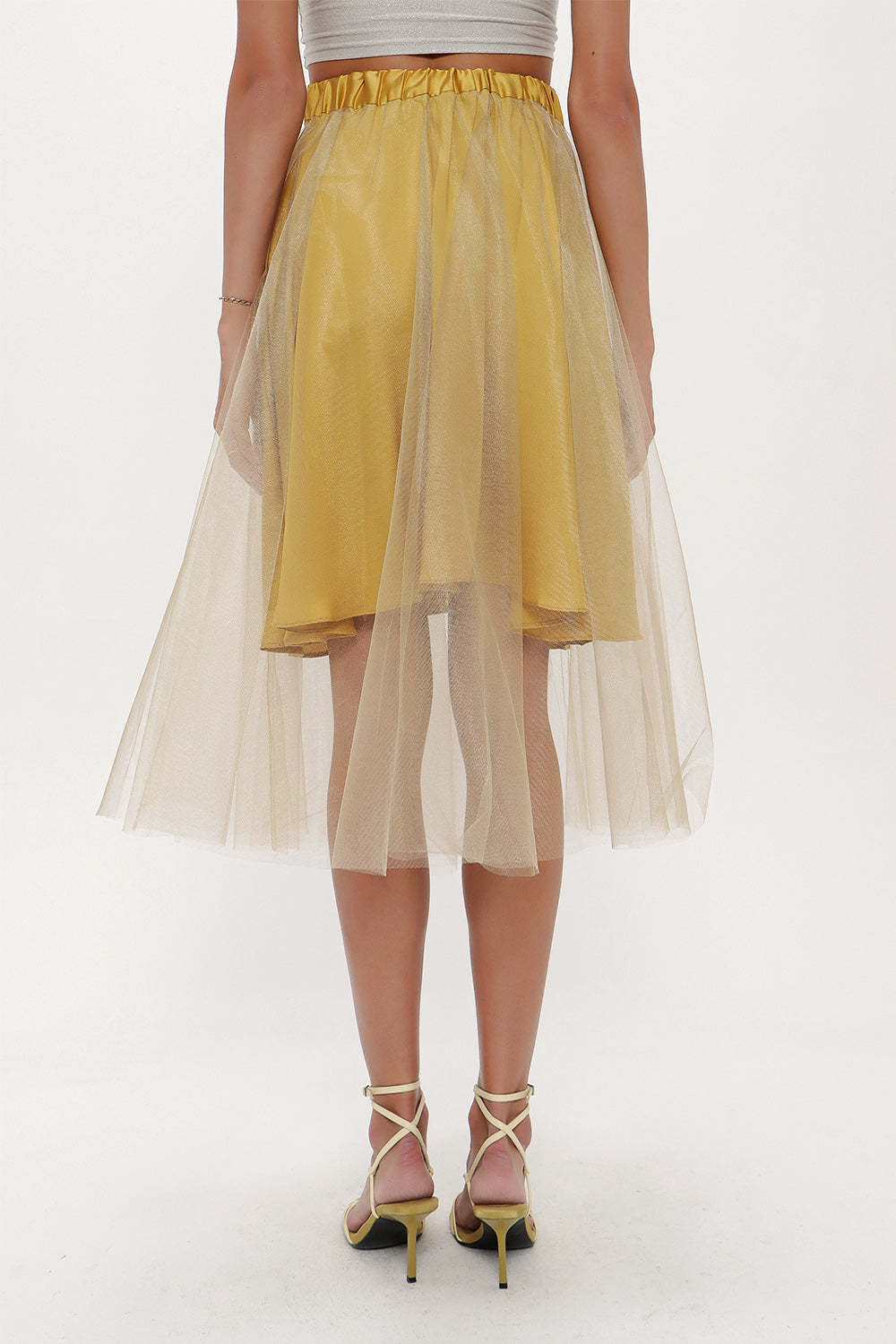 Beige Elastic waist tulle skirt 81075