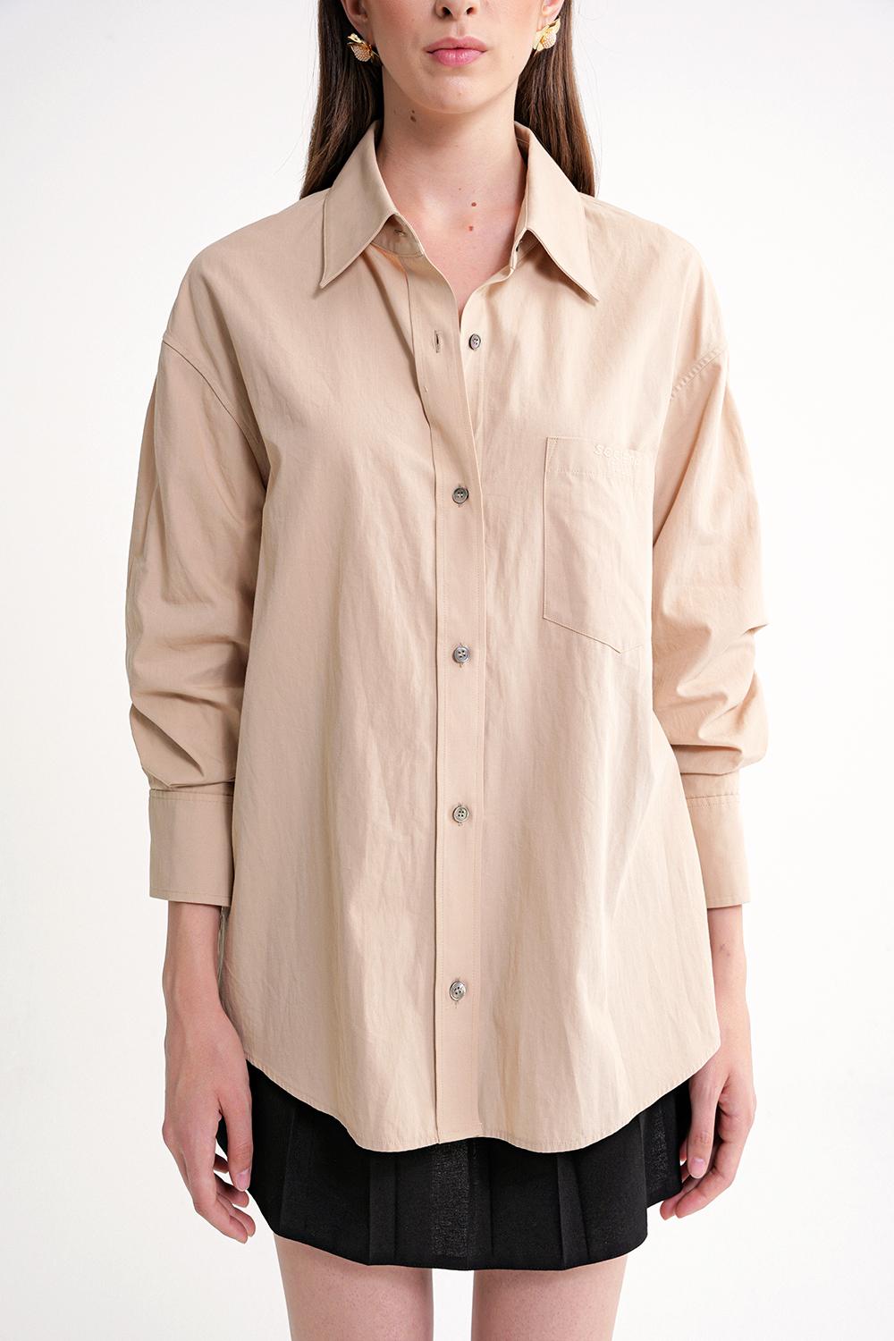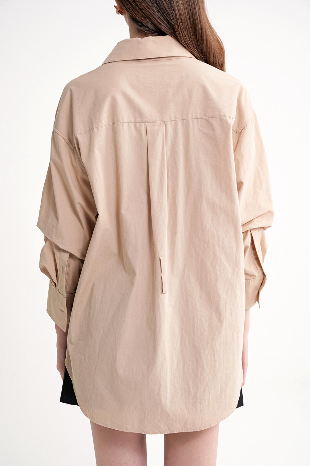 Beige Gathered sleeves, a belted waist, and low shoulders shirt 10839