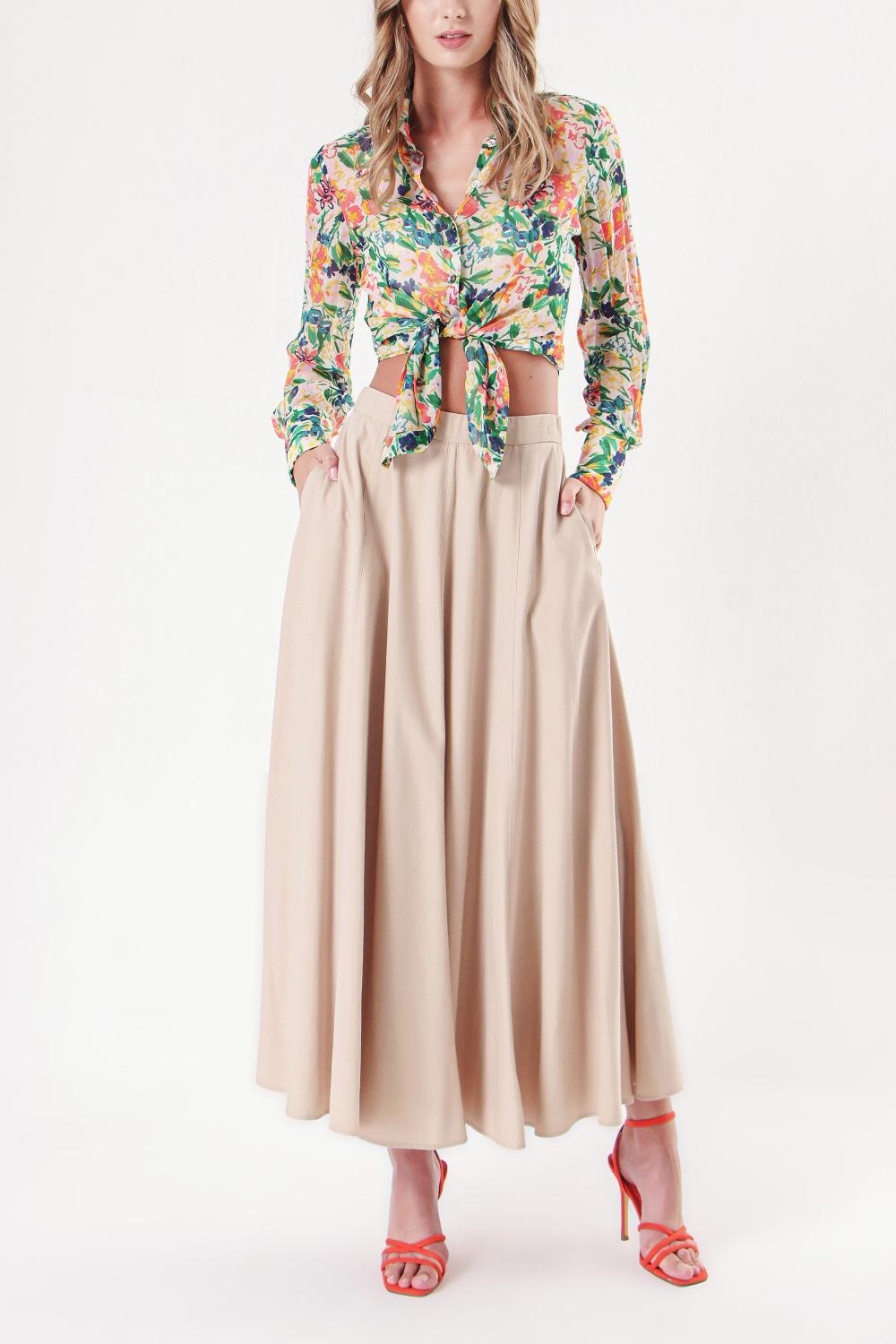Beige Godet high waist skirt 81214