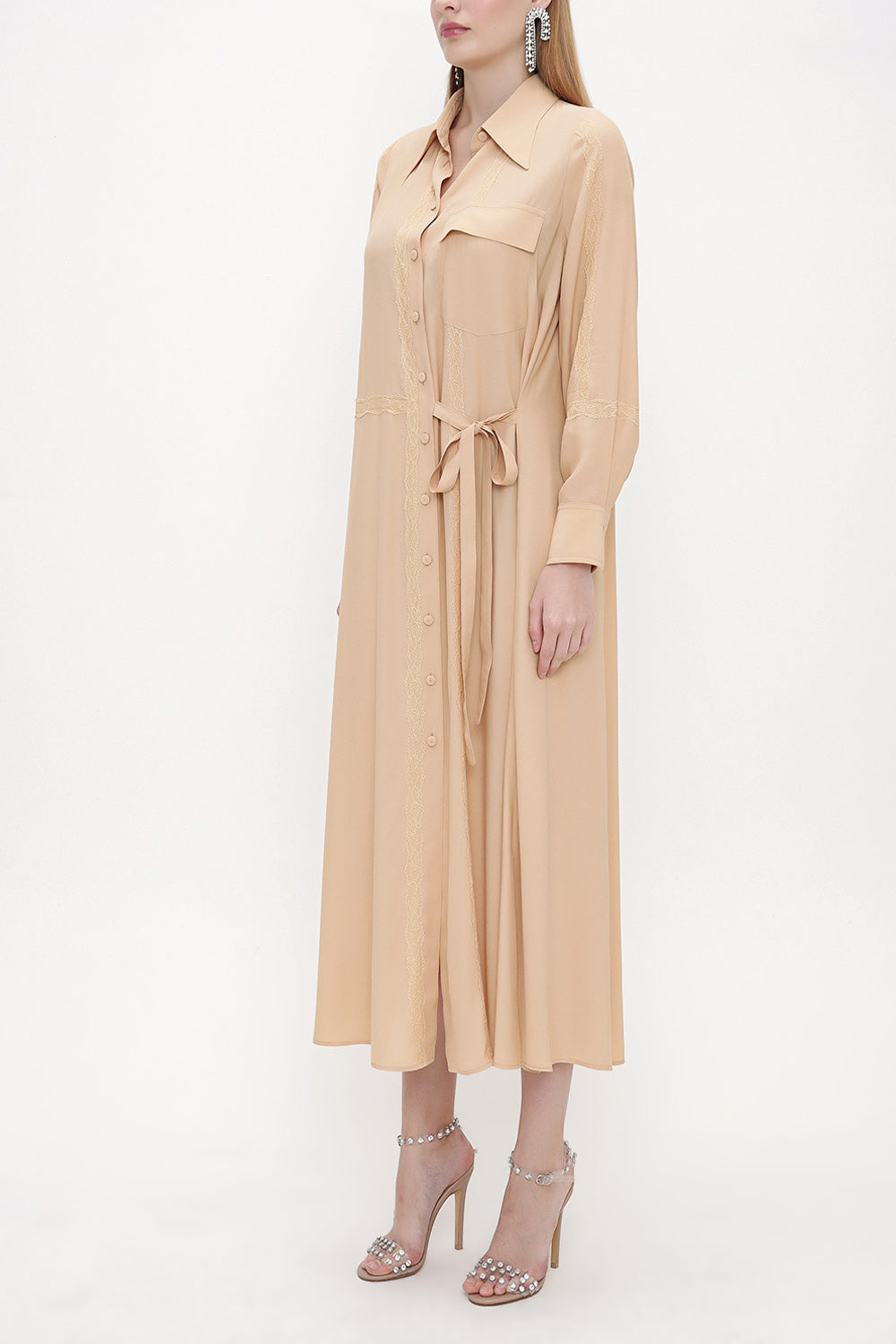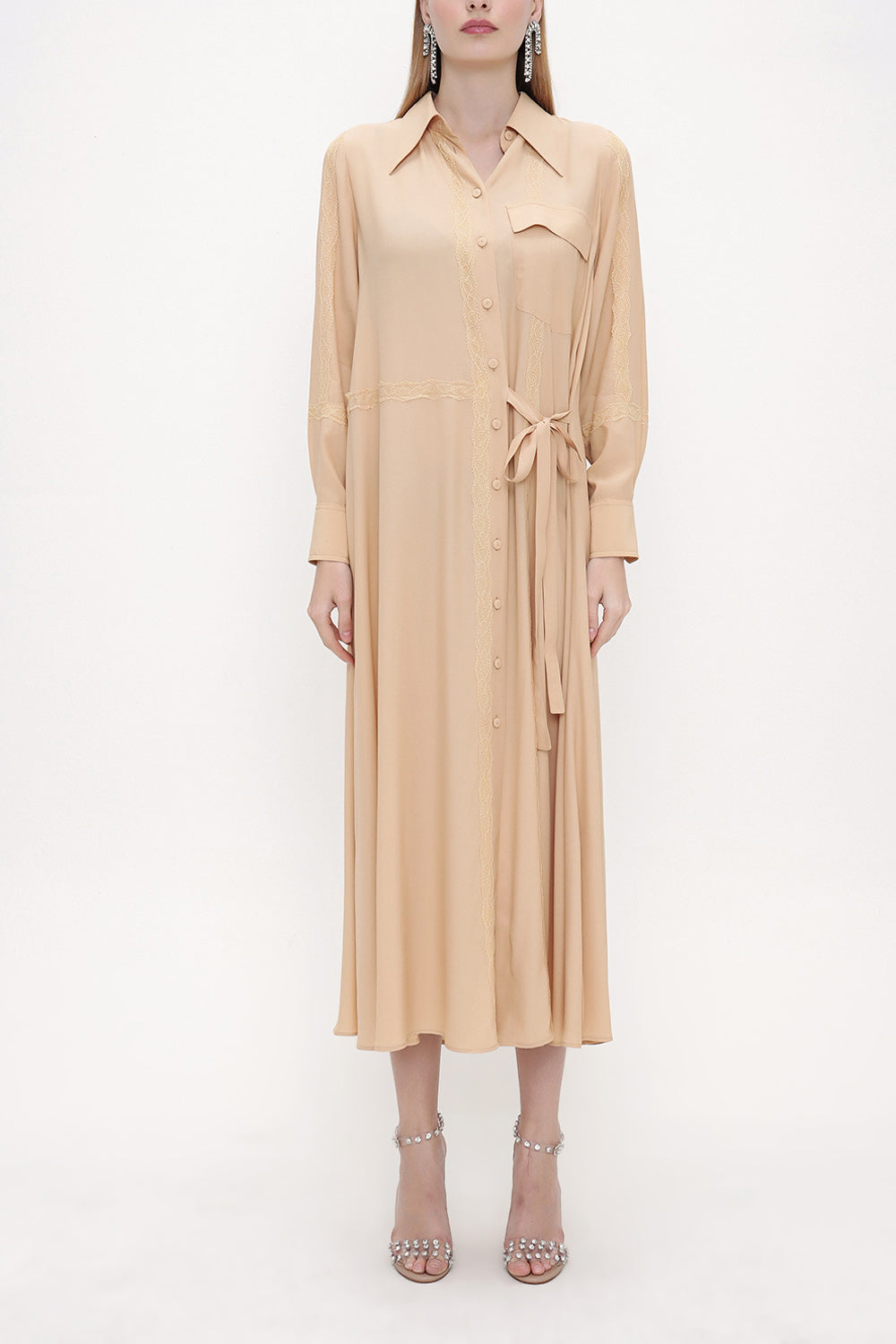 Beige Lace detail shirt dress 93826