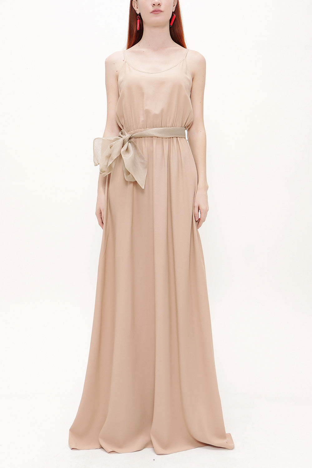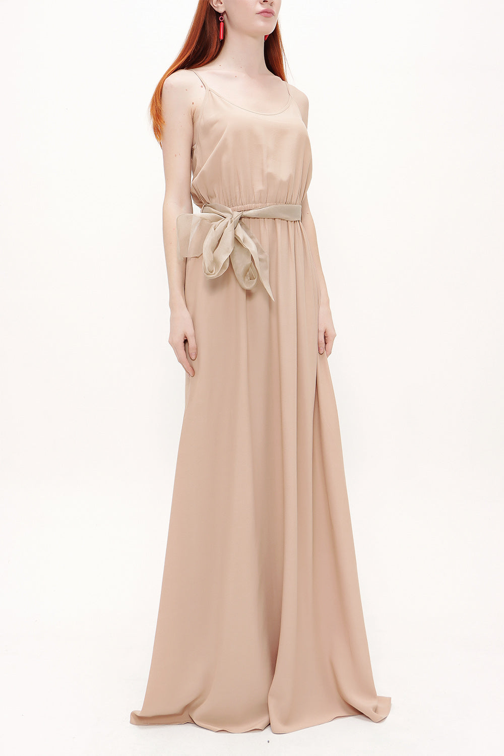 Beige Lace-up spaghetti straps maxi dress 92378