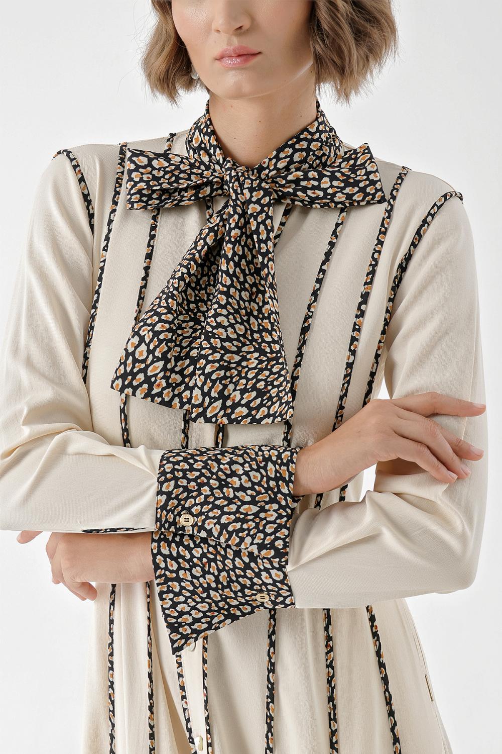Beige Long shirt dress with contrast piping detail 94325