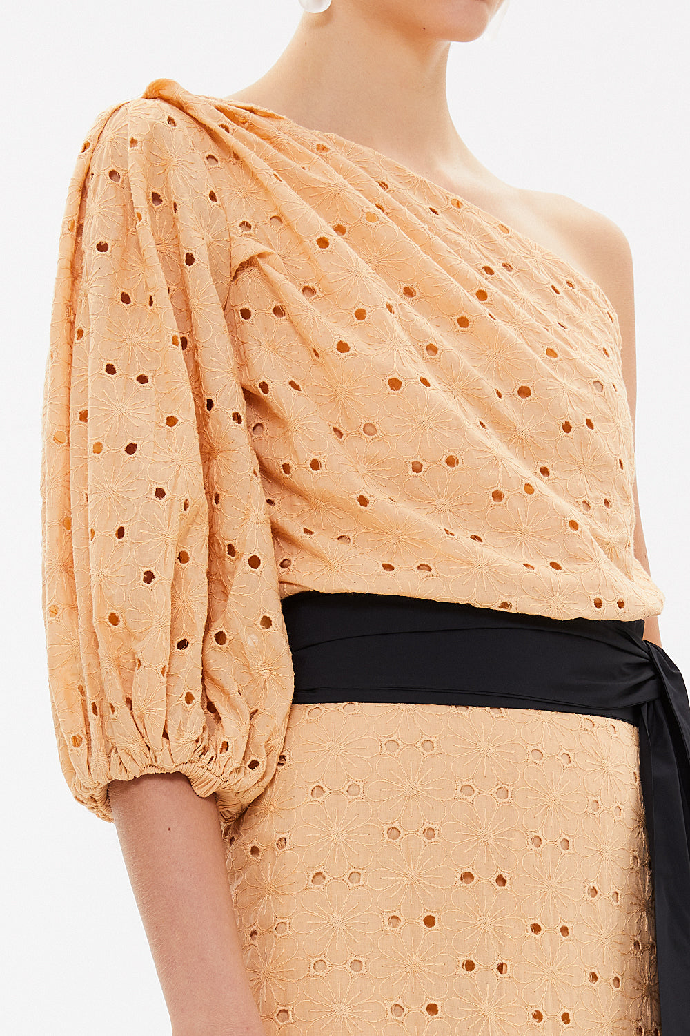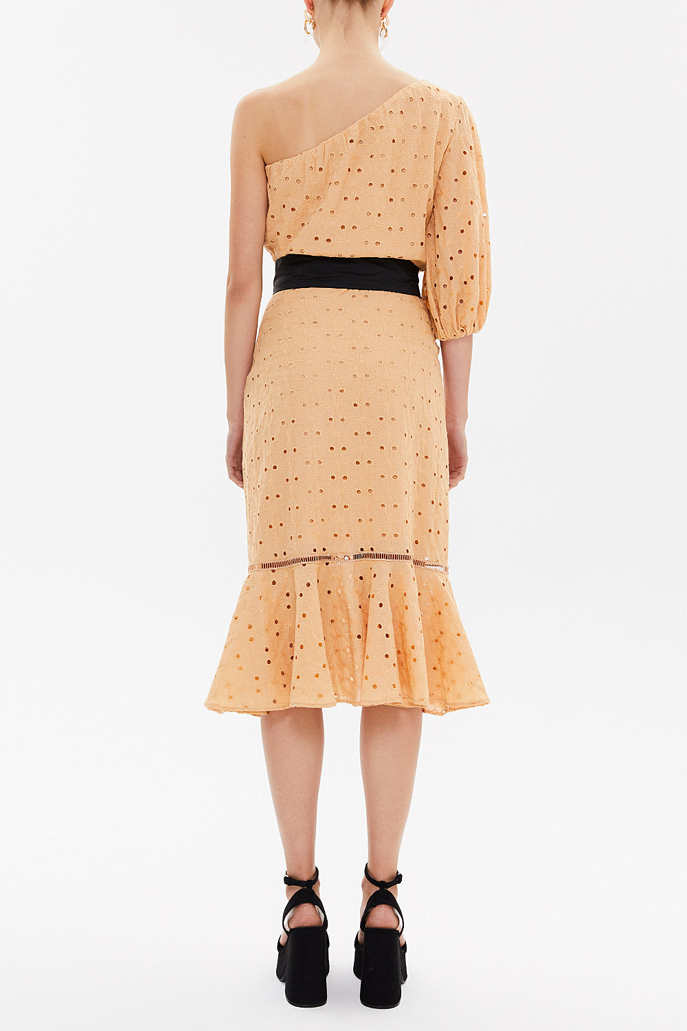 Beige One shoulder balloon sleeve midi dress 93073