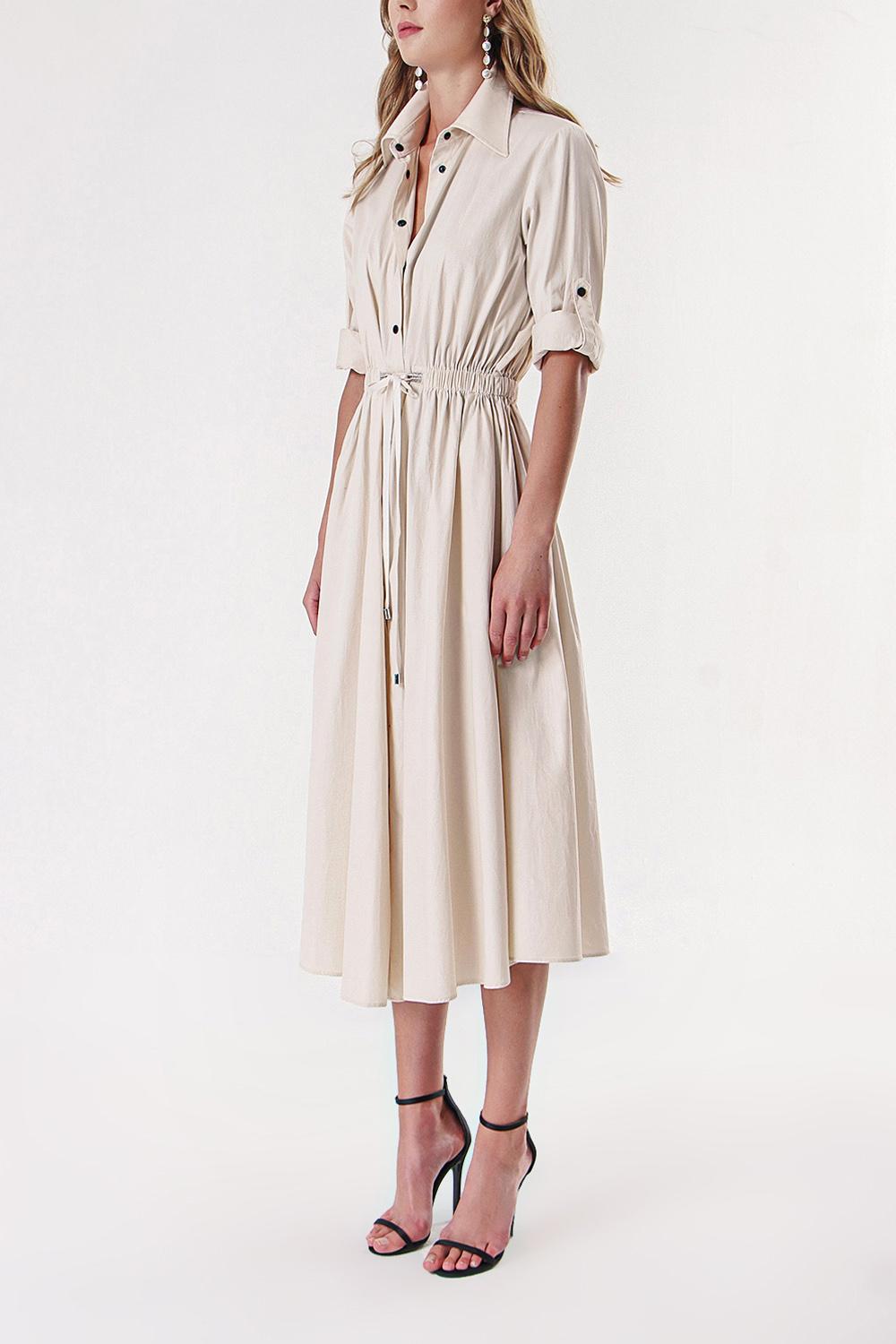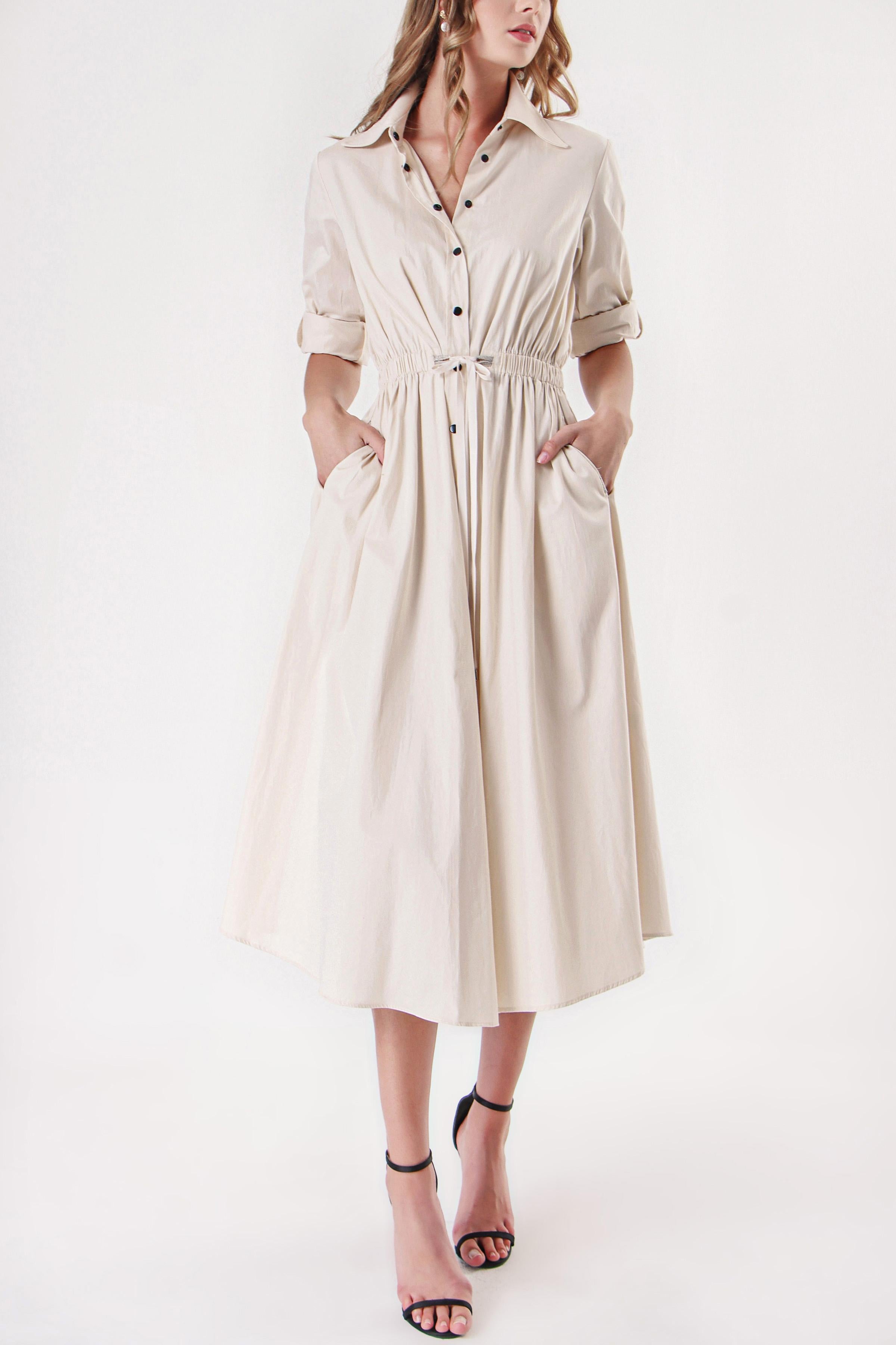 Beige Shirt dress with elastic waist and snap fastener detail 94218