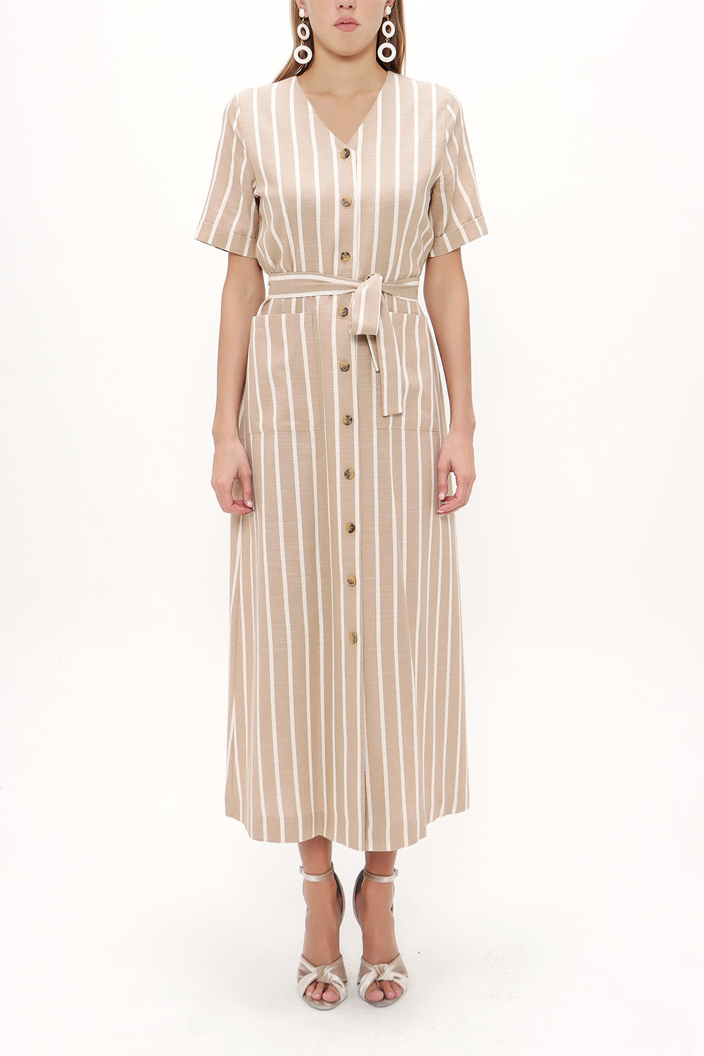 Beige Short sleeve midi dress 92852