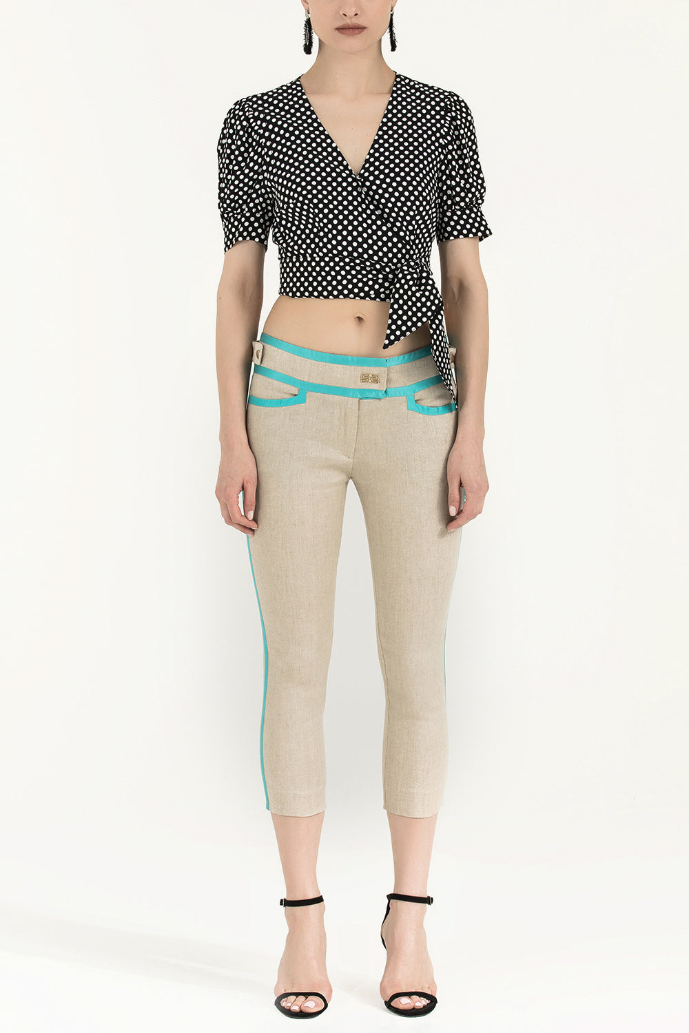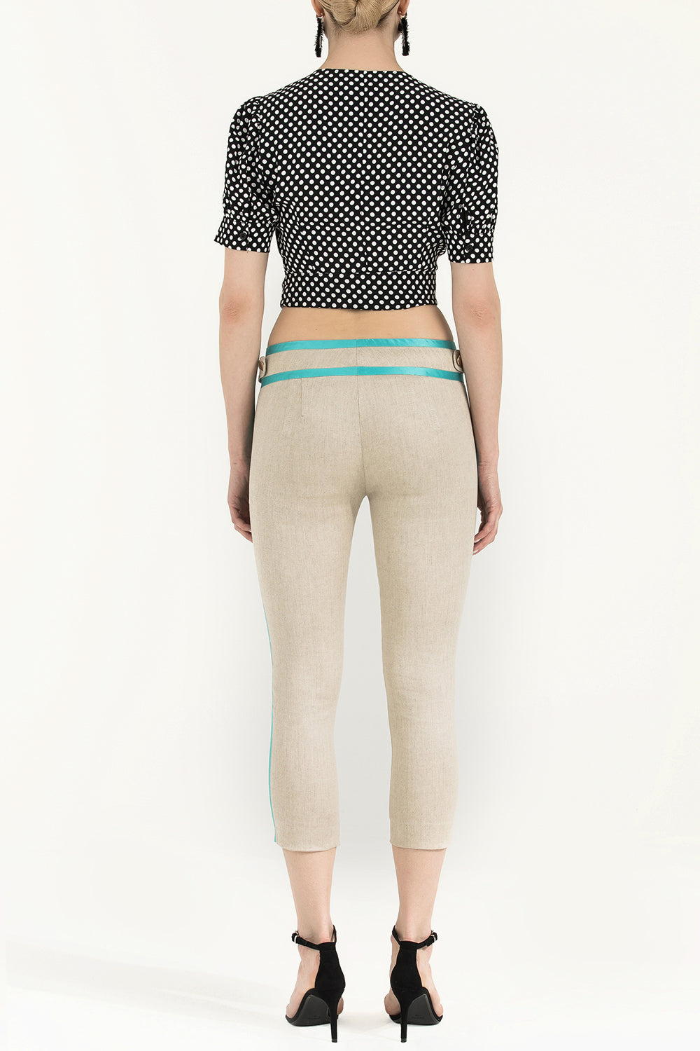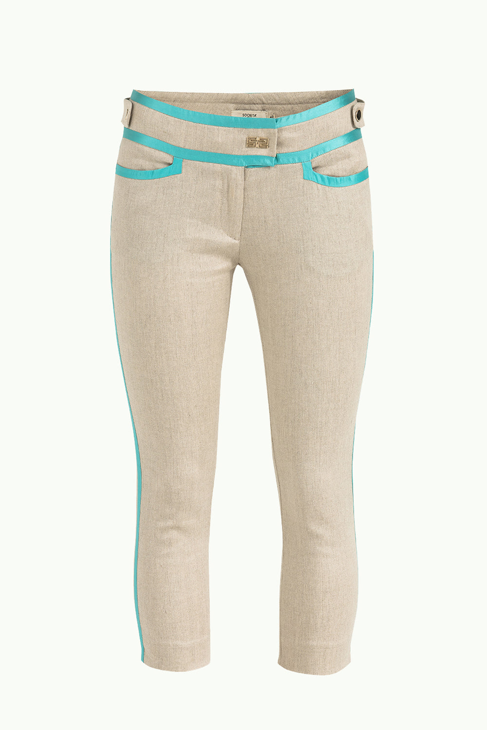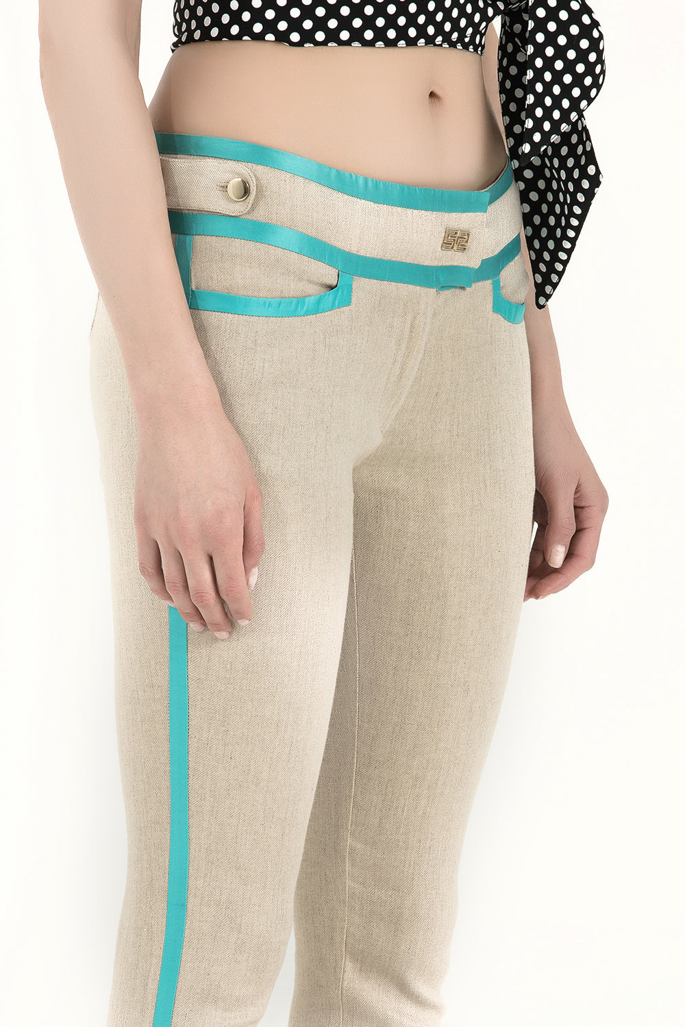 Beige Silk mixed slim fit pants 40673