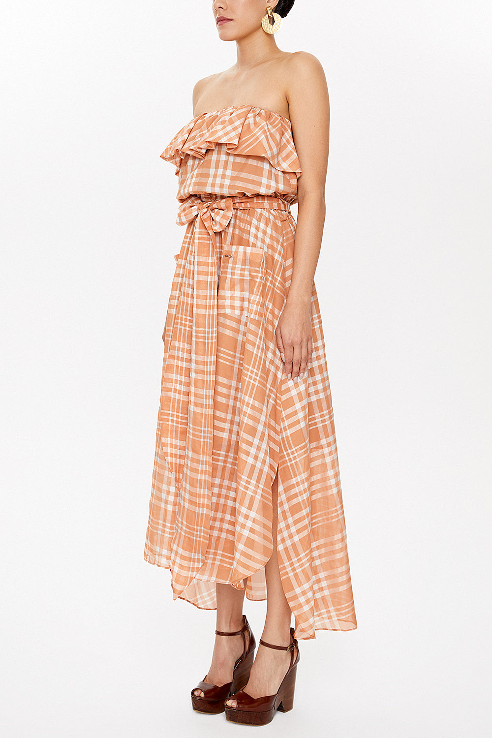 Beige Strapless waist tie dress 93116