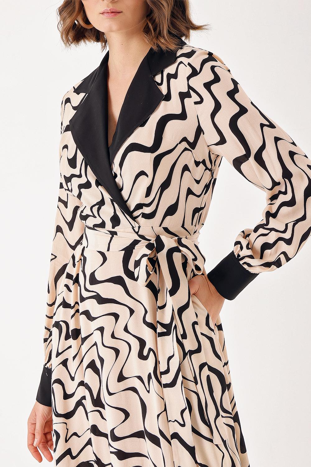 Beige Wide neck padded dress 94367