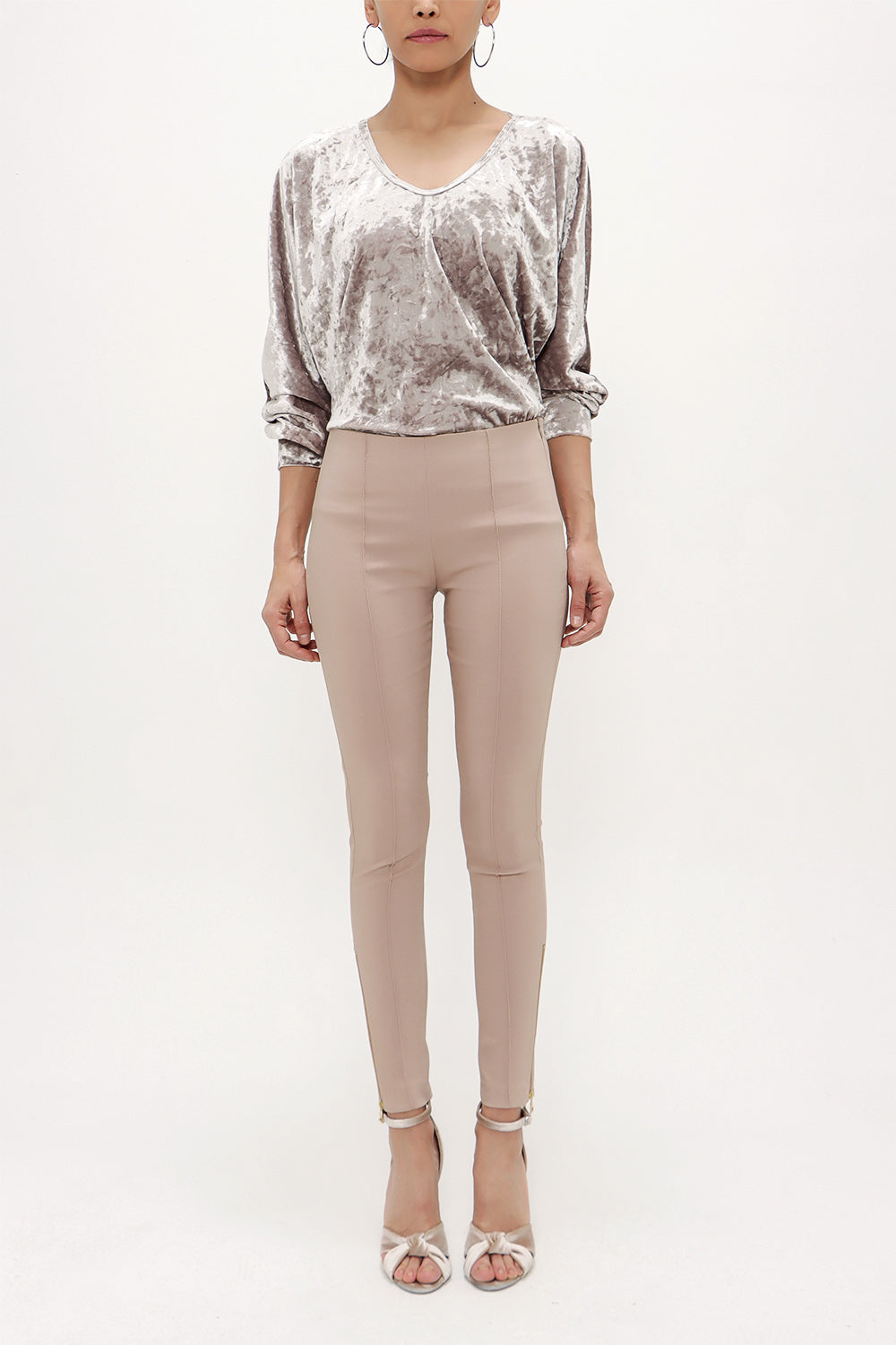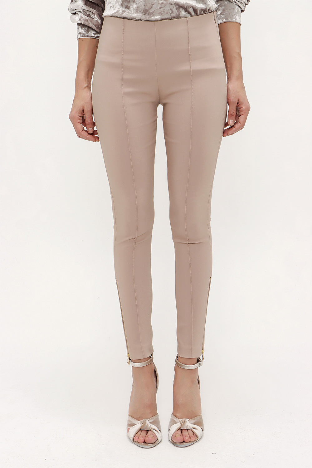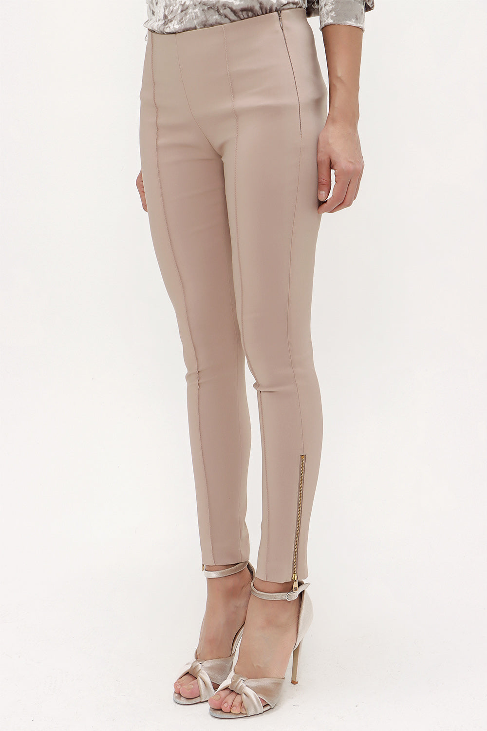 Beige Zipped cuff legging pants 41060