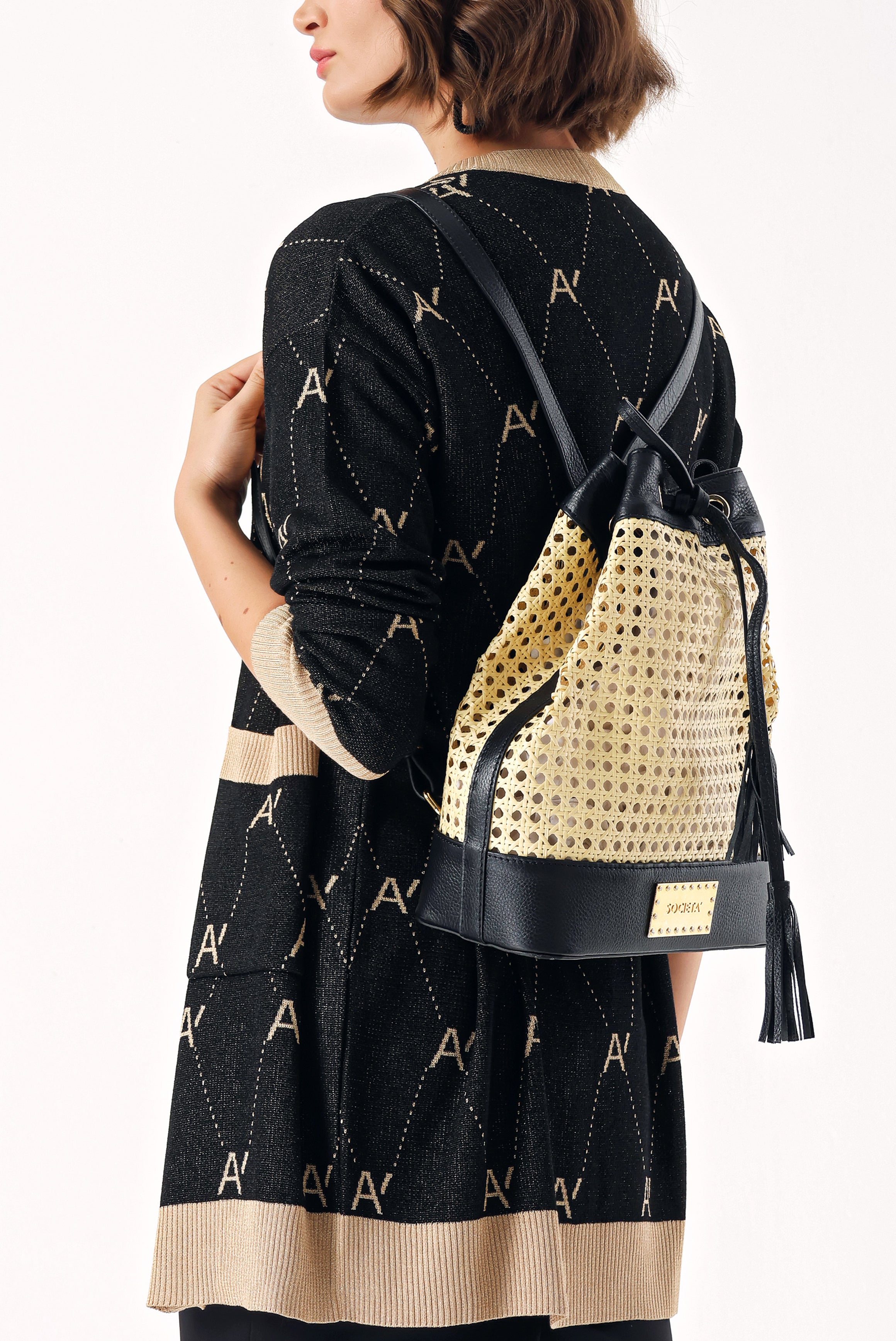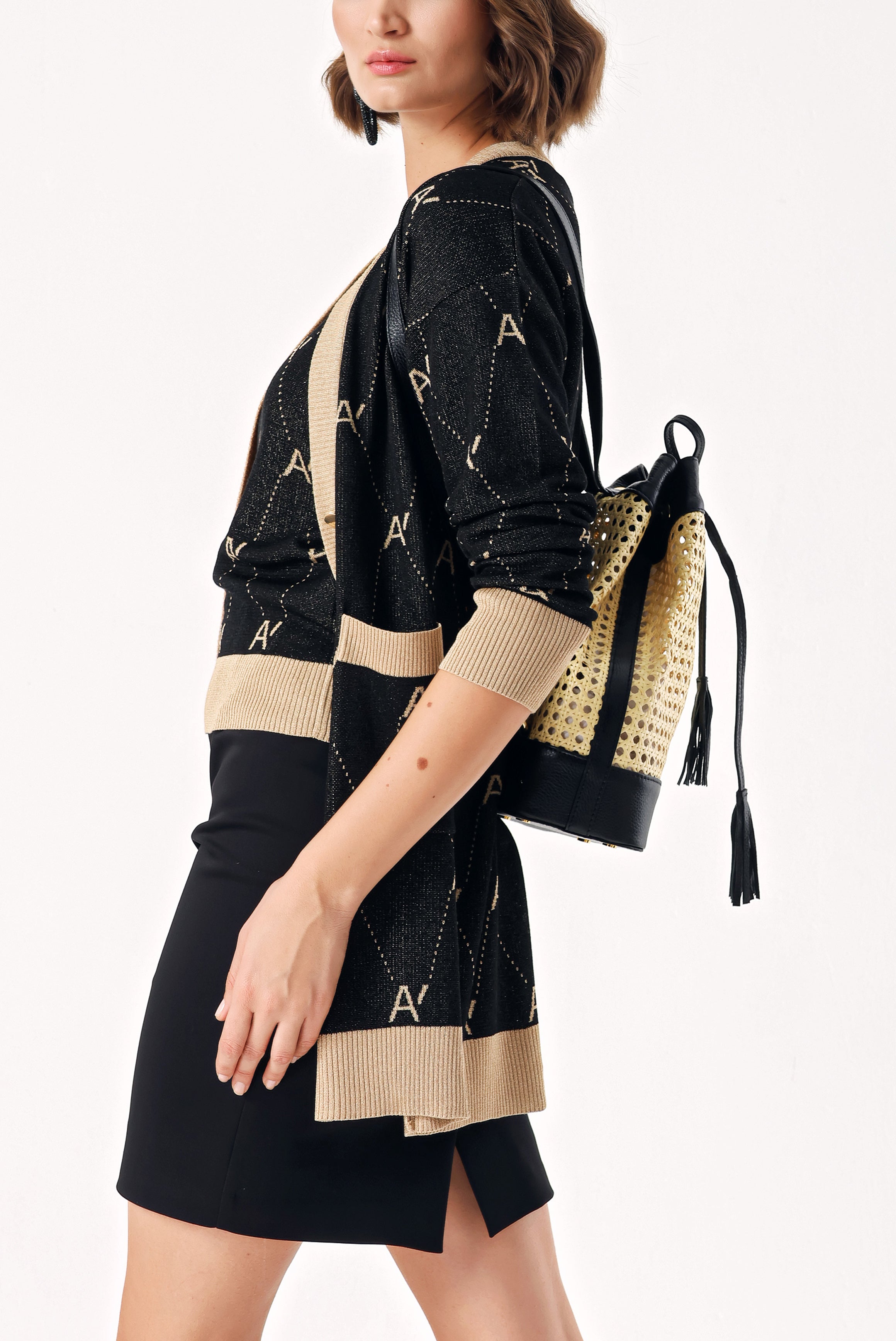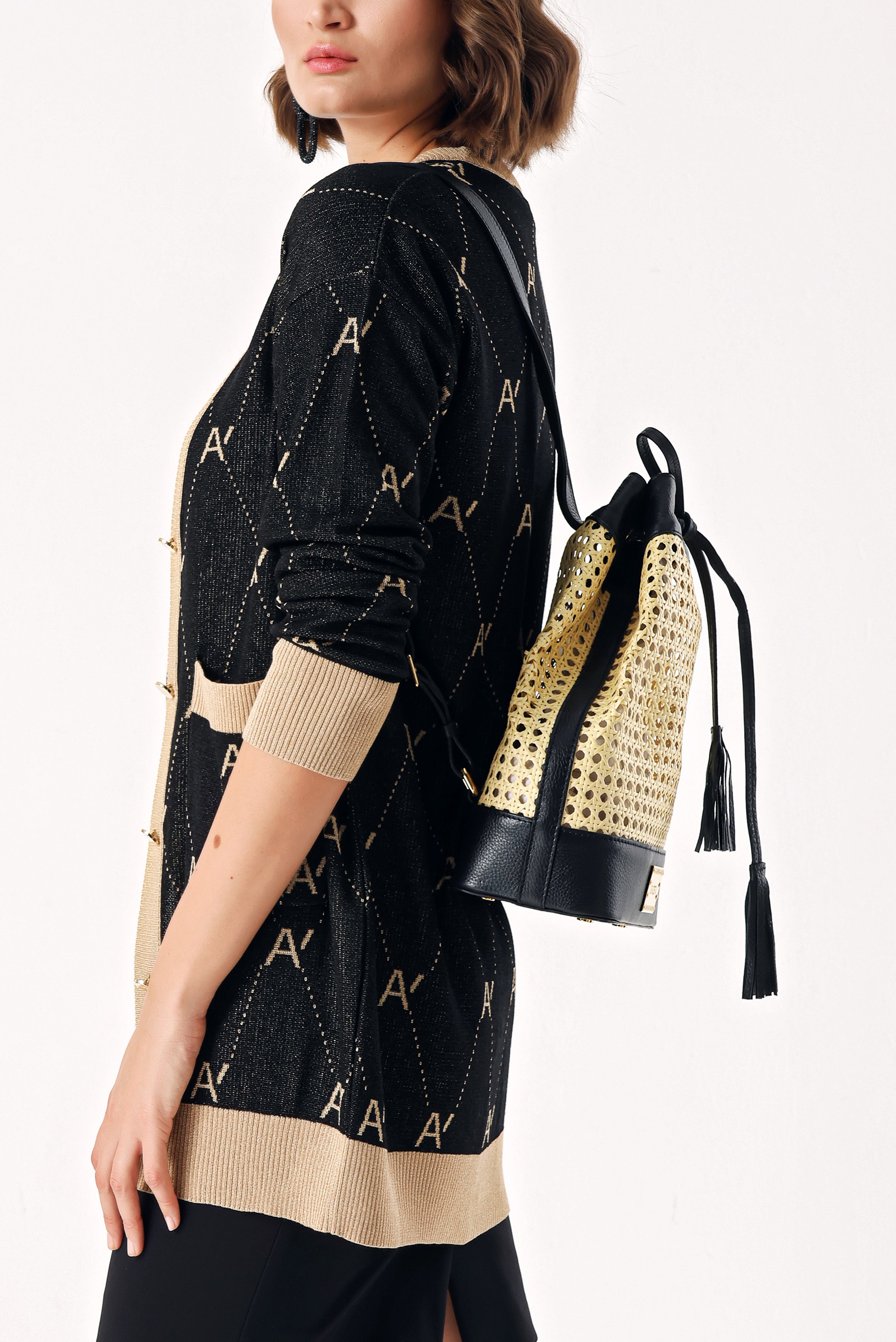 Black Straw bag with accessory detail 23015