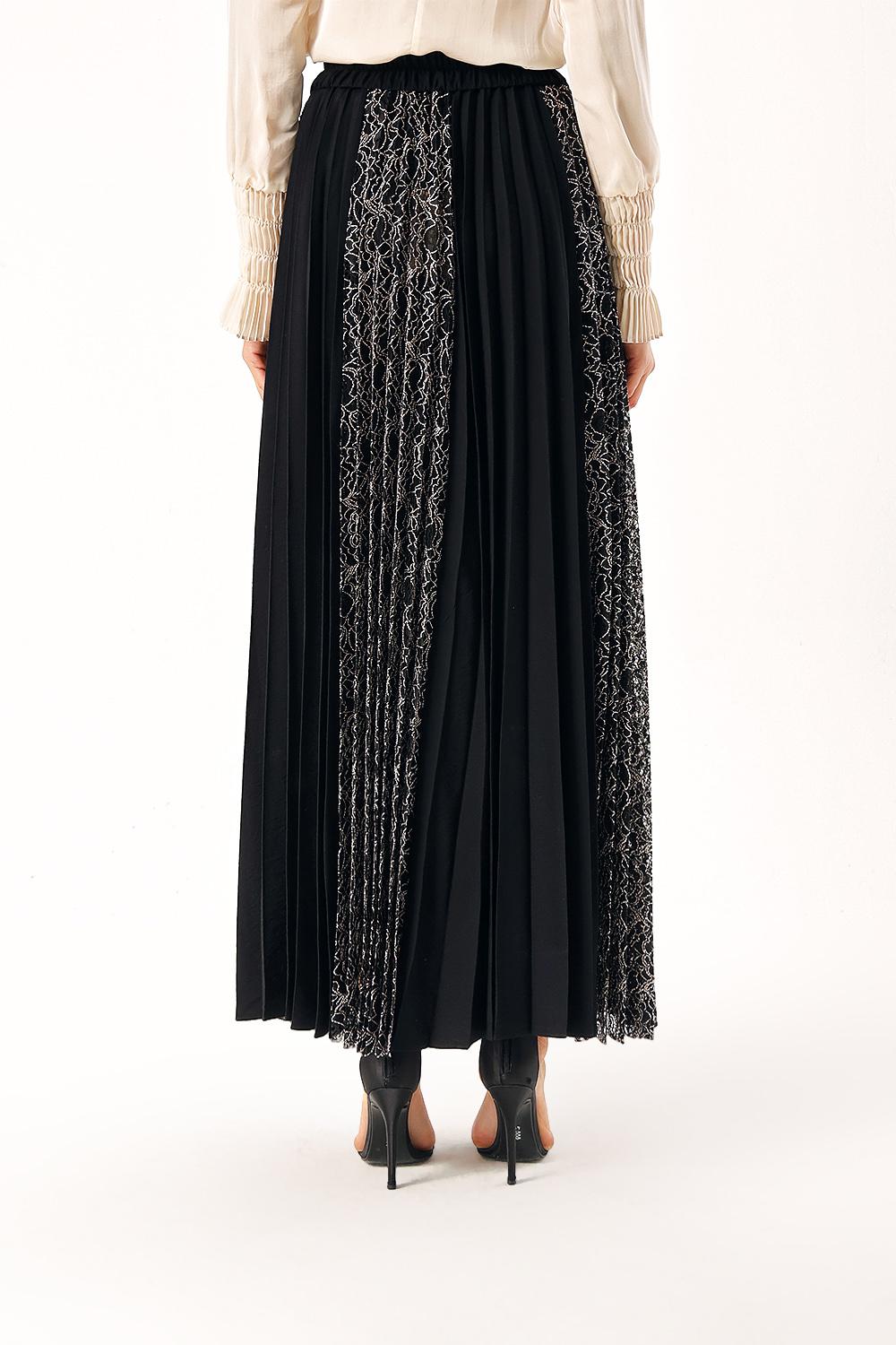 Black Pleated skirt with lace detail 81273