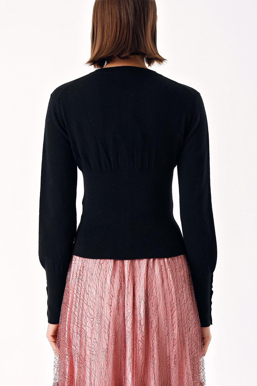 Black Waist fitted ribbed short knitted cardigan 28840