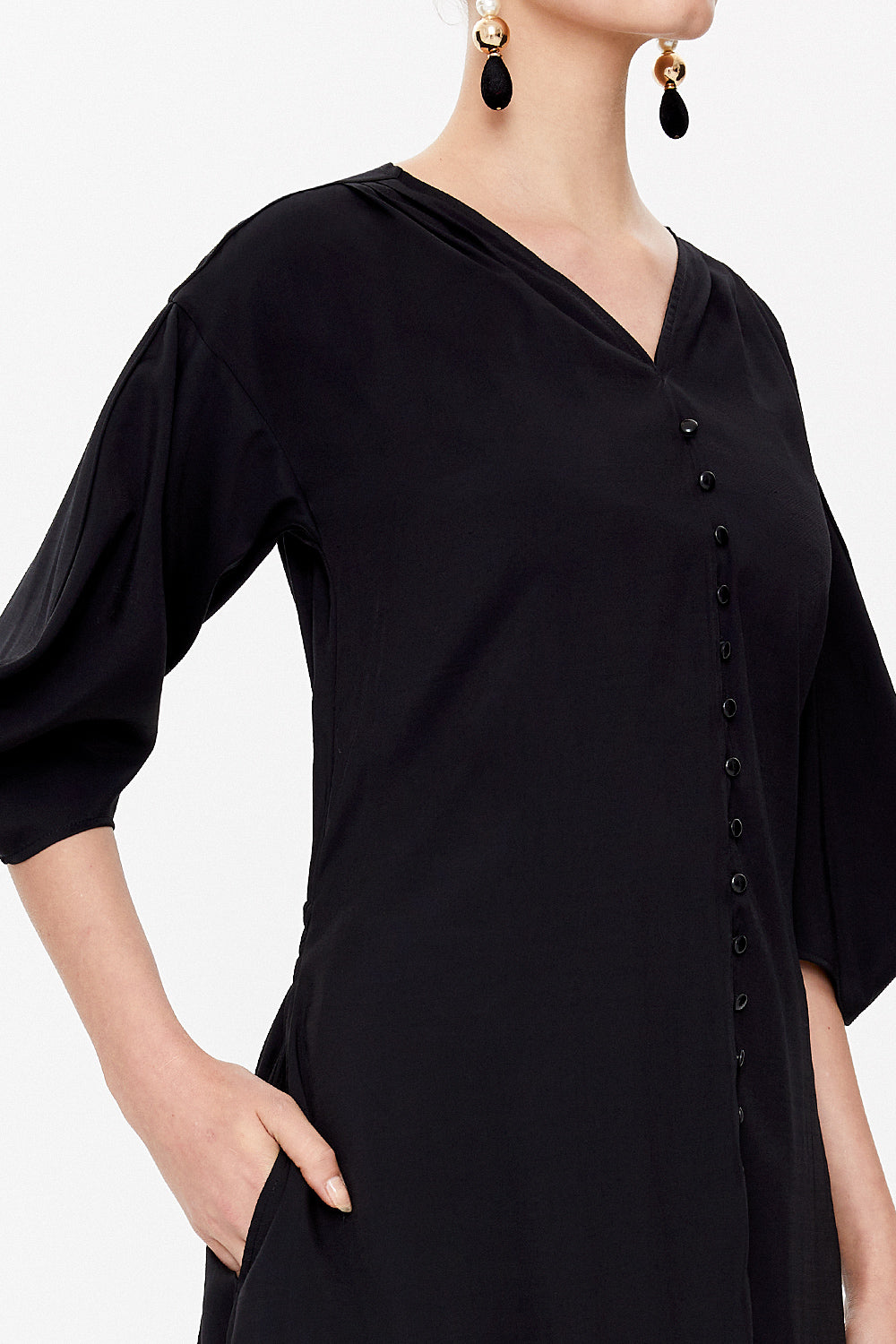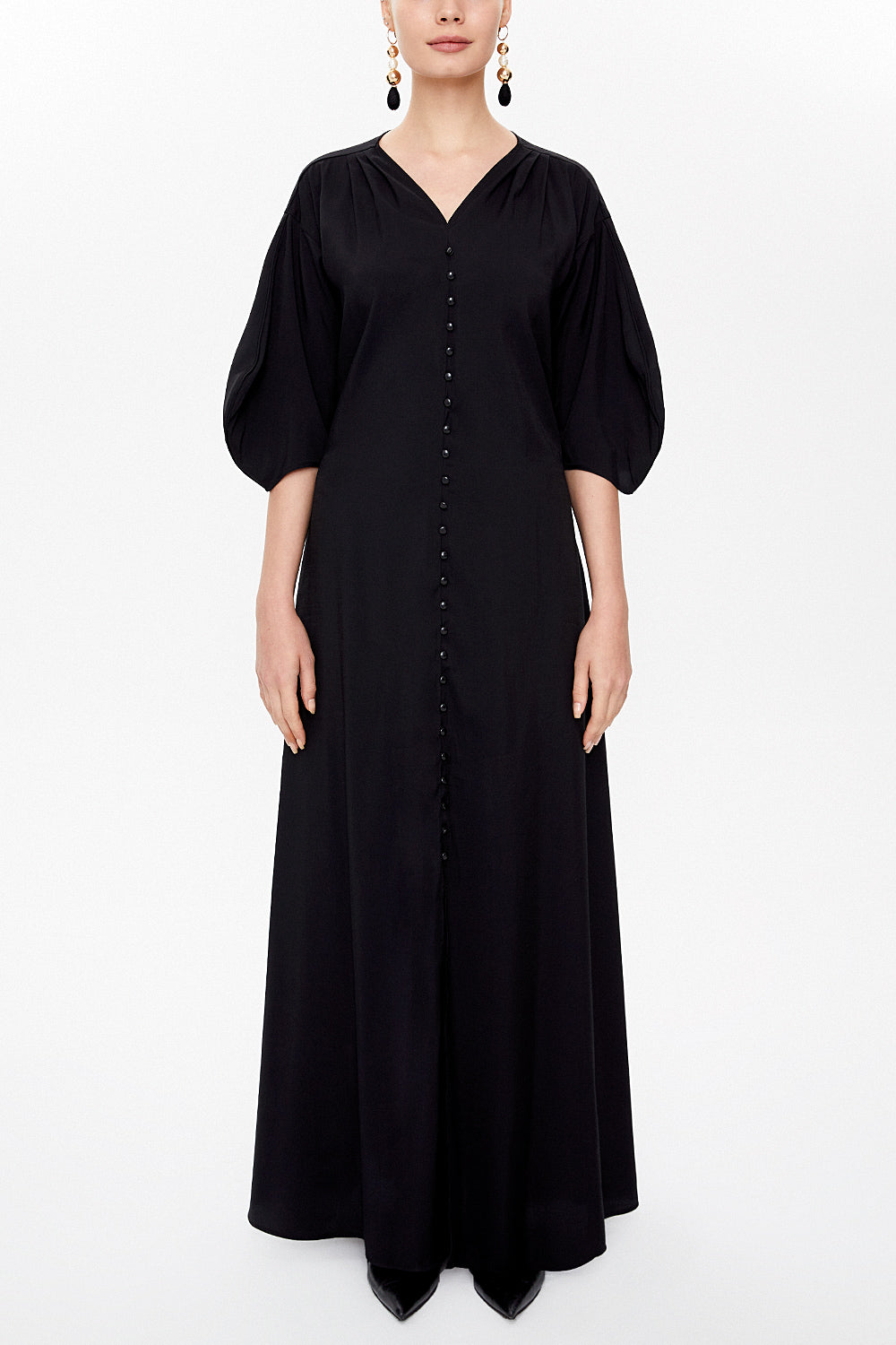 Black Balloon sleeve V-neck maxi dress 92993