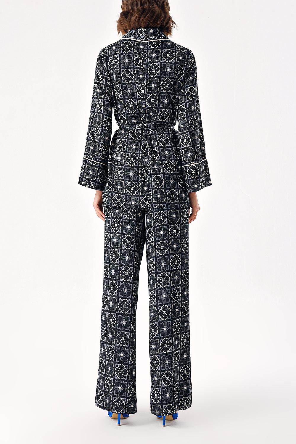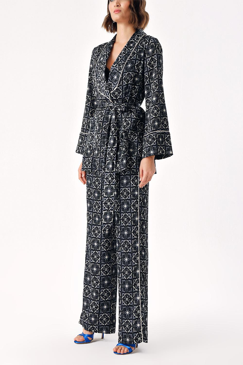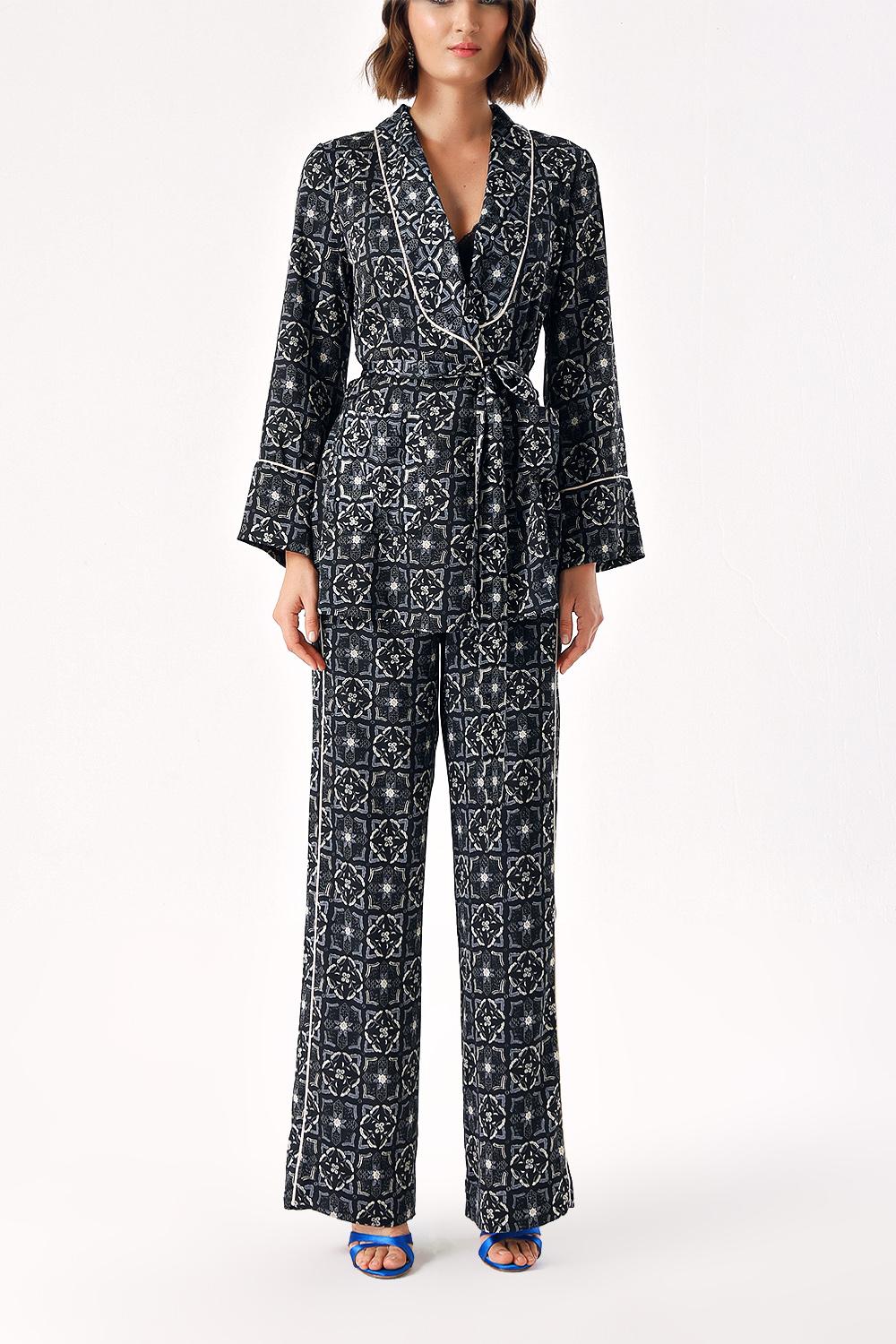 Black Beige Double-breasted piping set suit 12305