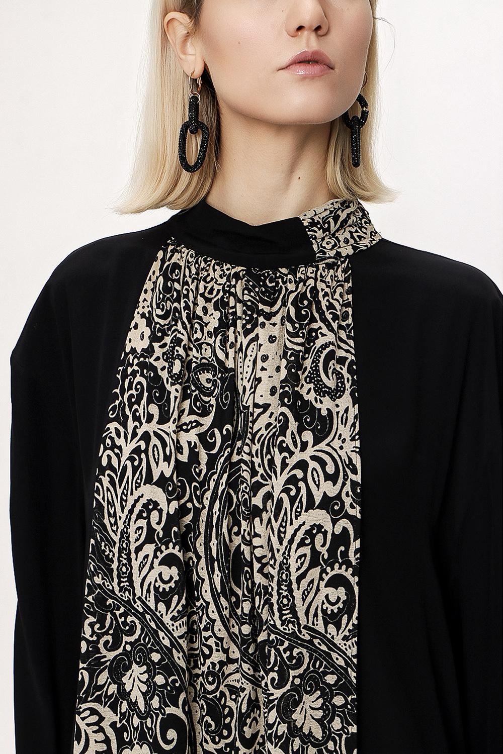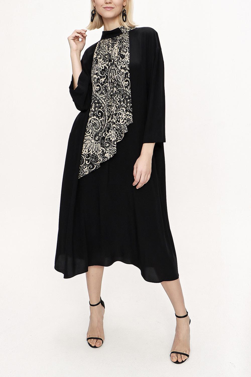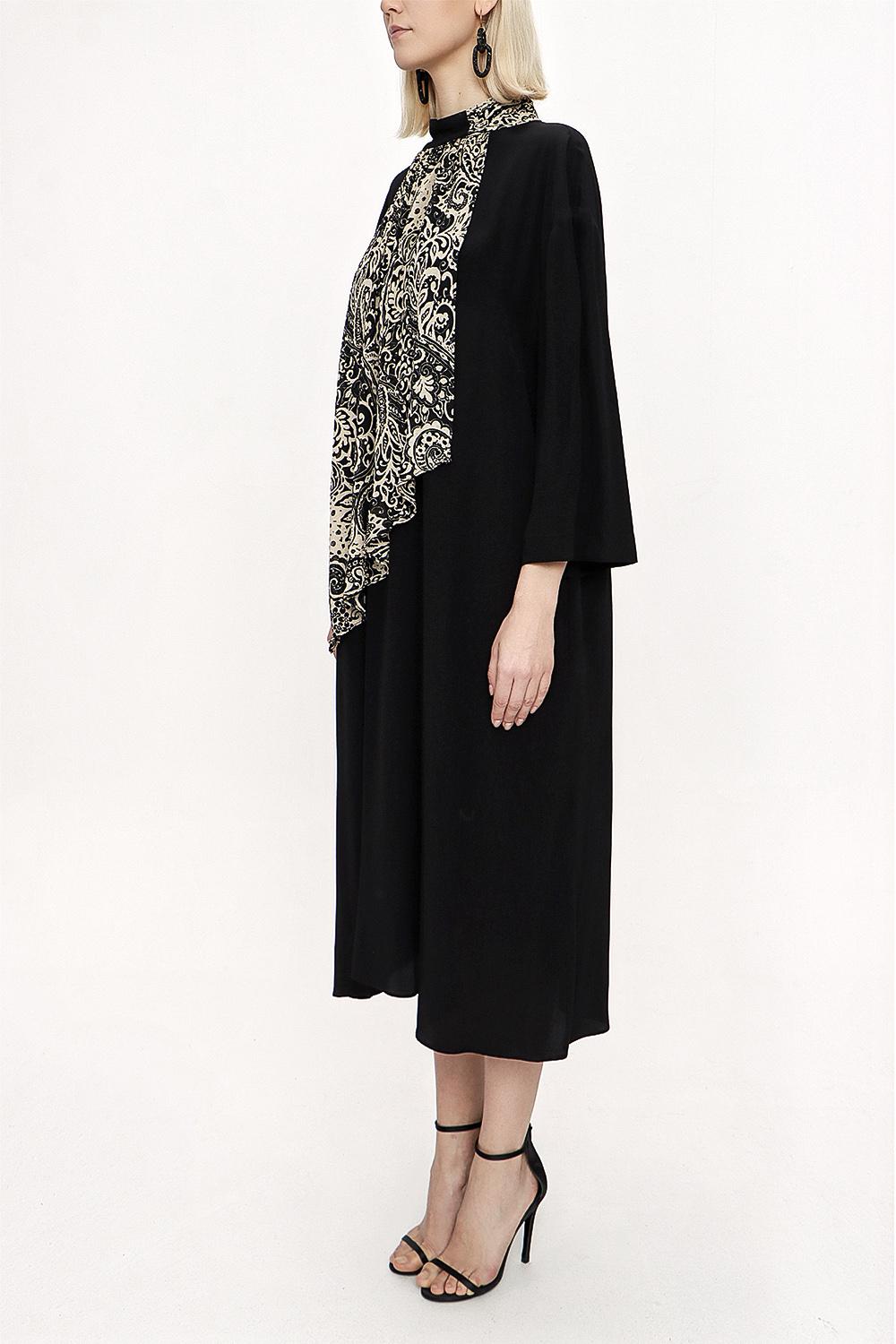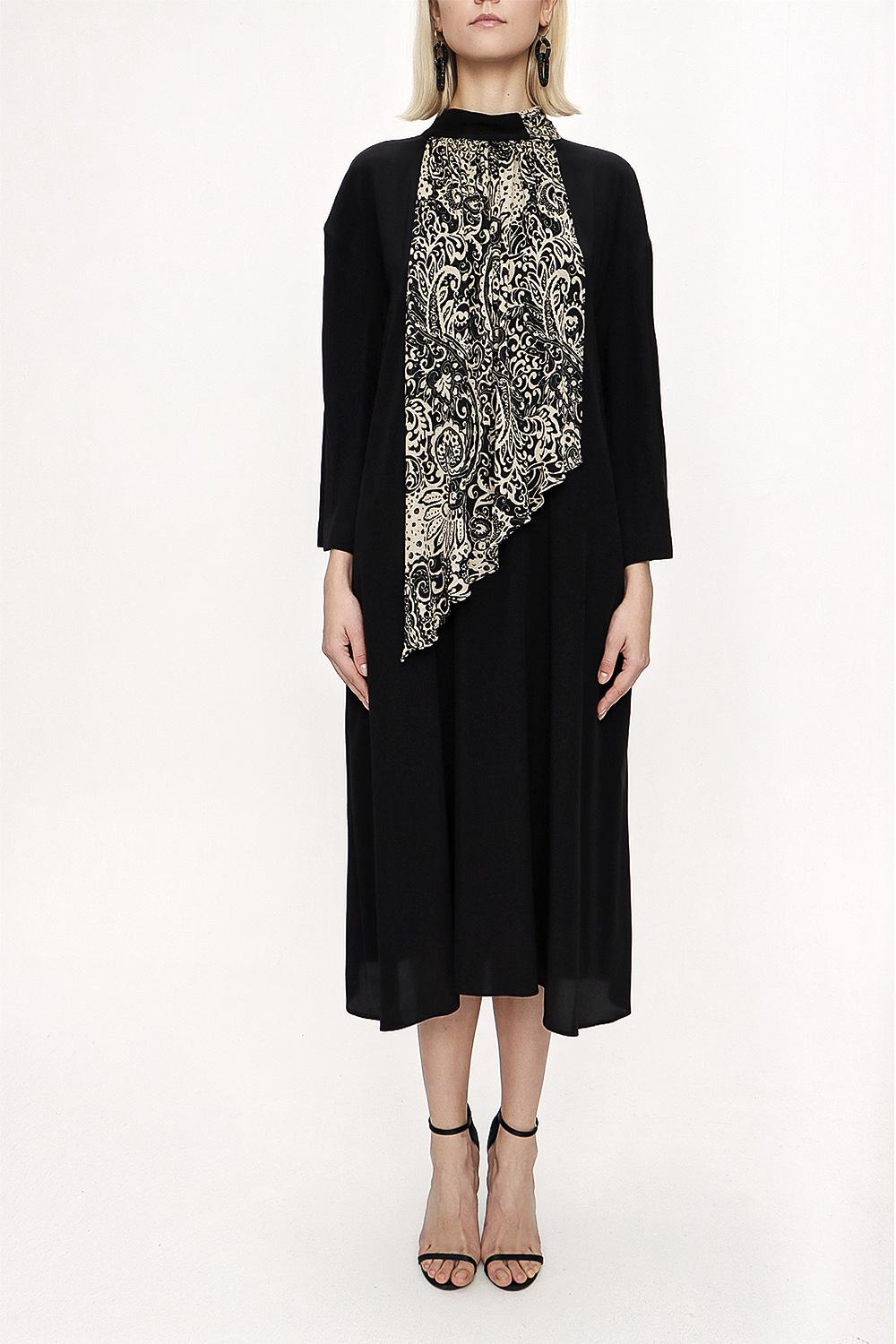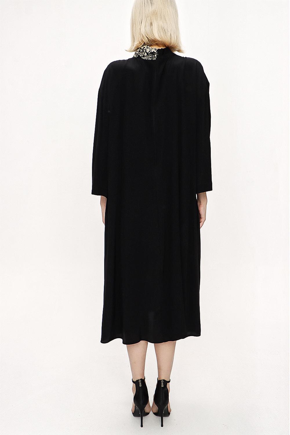 Black Beige Loose fit dress with contrast fabric detail 94119