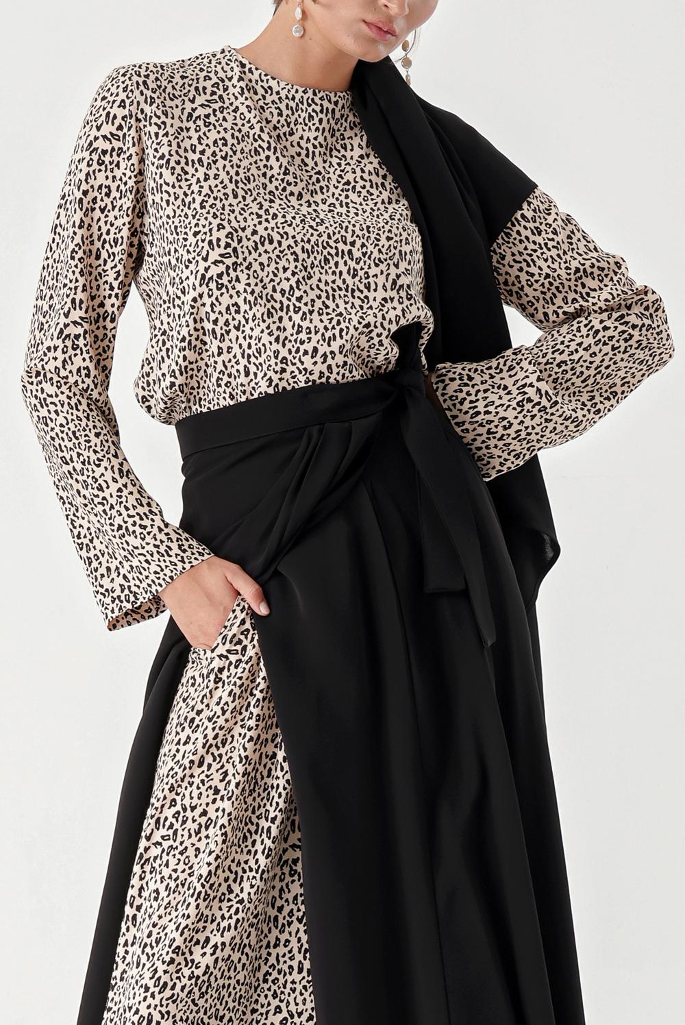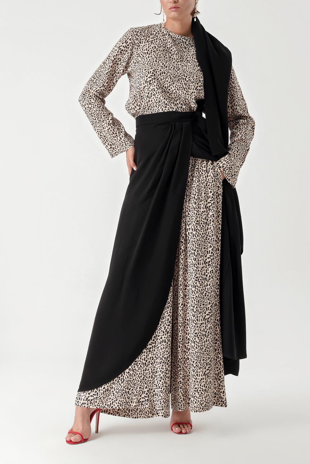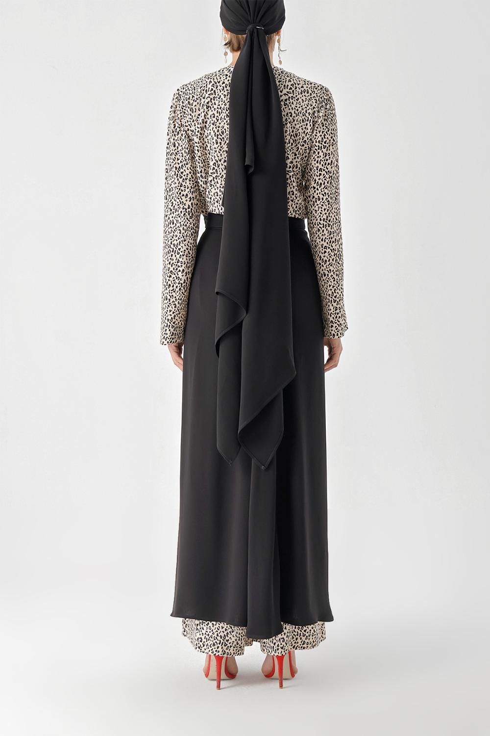 Black Beige Set of four with elastic waistband, trousers, skirt and shawl 12327