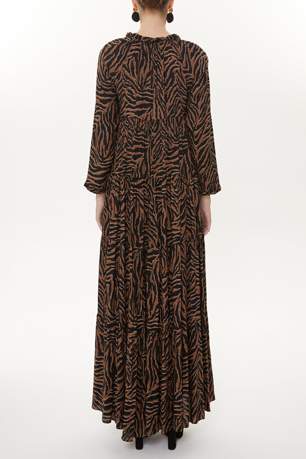 Black Beige Wide cut Pleated maxi dress 93332