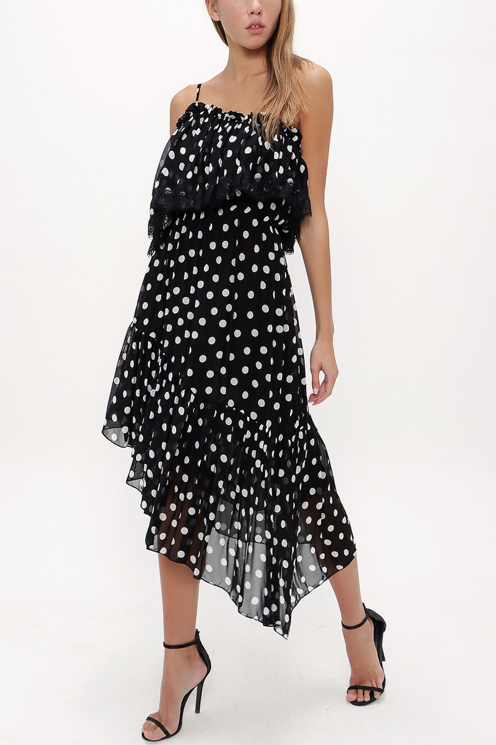 Black Belted and lace strapless midi dress 92315