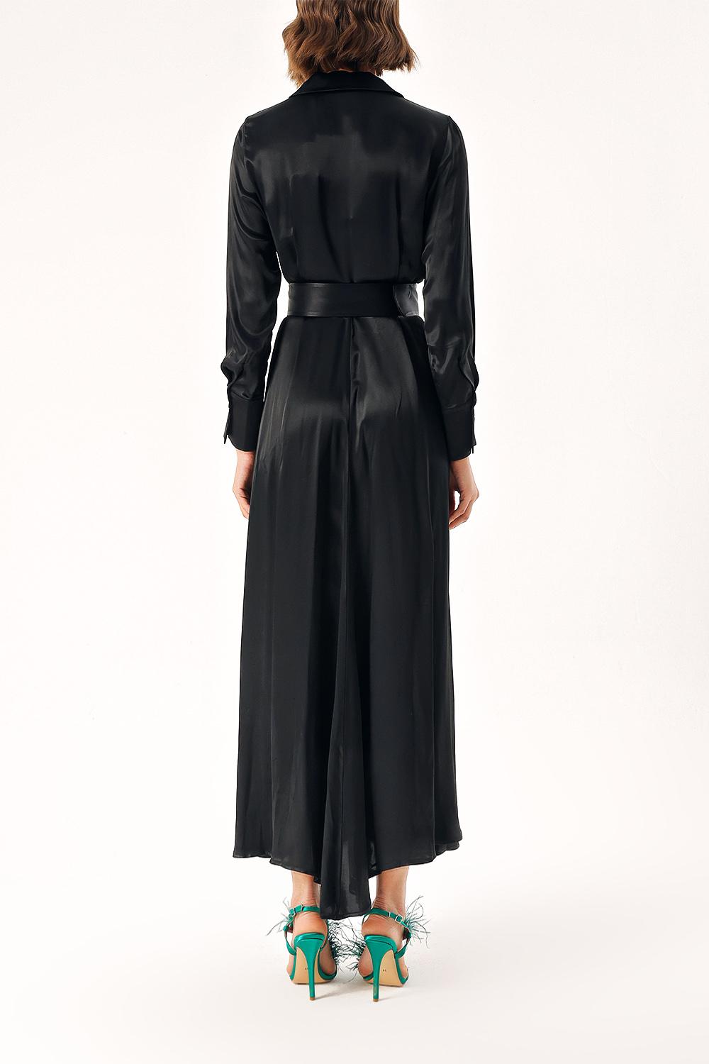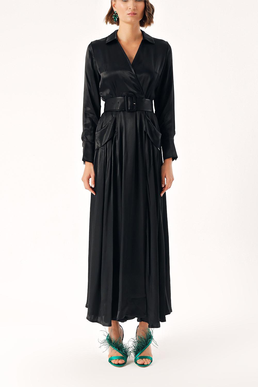 Black Belted double-breasted dress with big pockets 94216