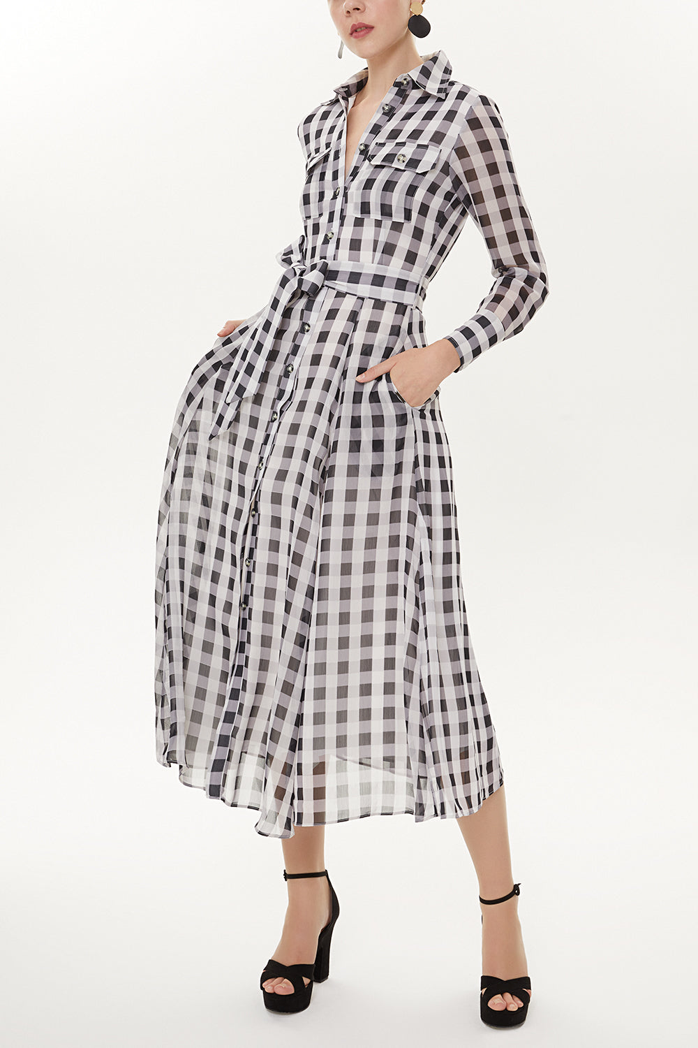 Black Button and Belted Maxi dress 92758
