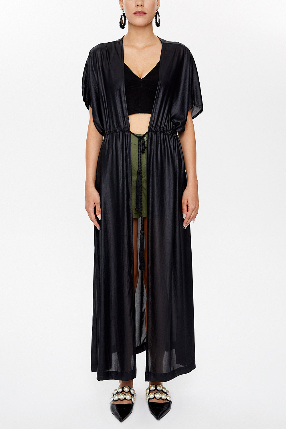 Black Cord detail Pleated long cardigan 92922