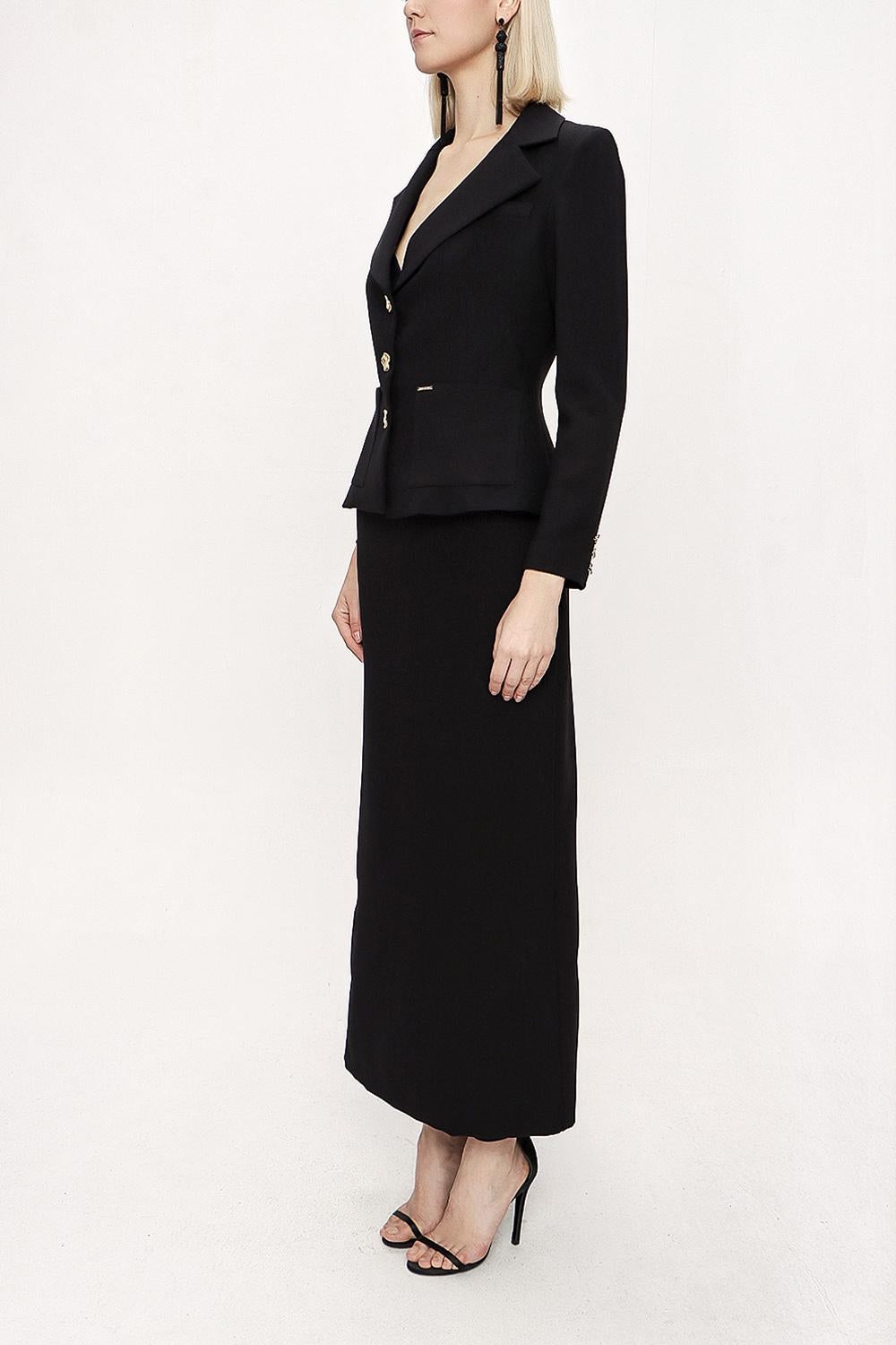 Black Double suit with long skirt and blazer jacket 12281