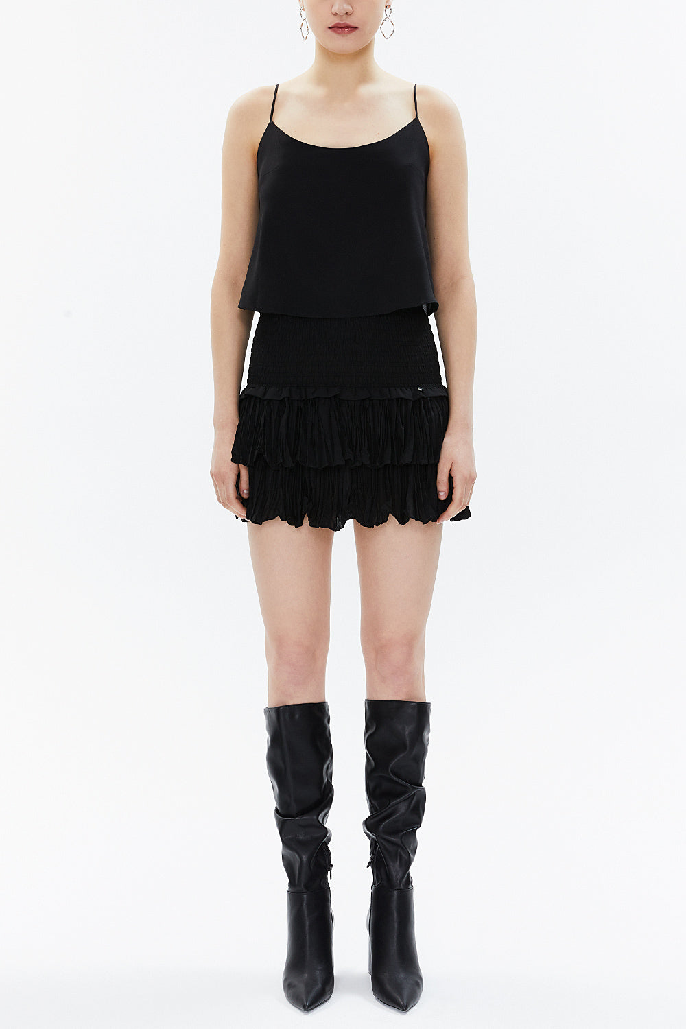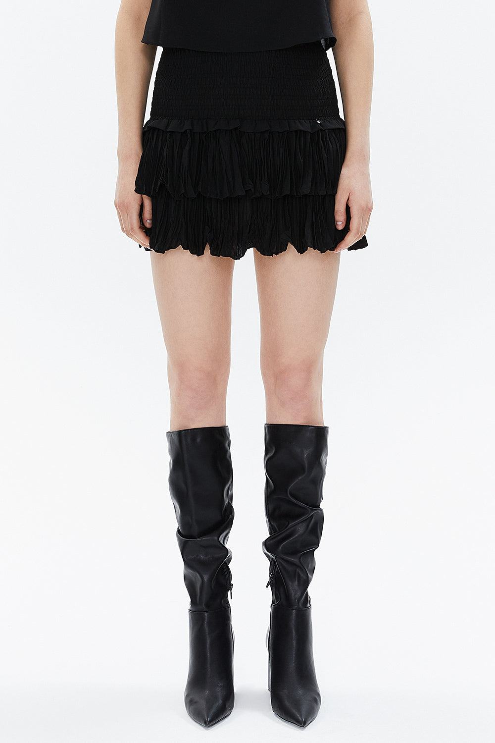 Black Elastic waist detail ruffled mini skirt 81156
