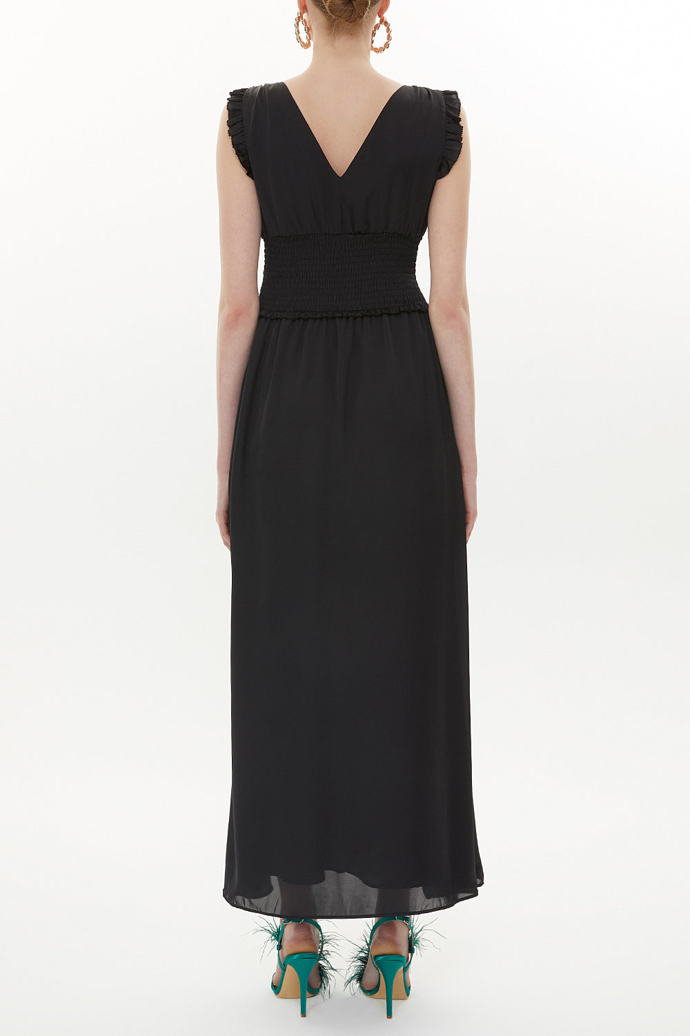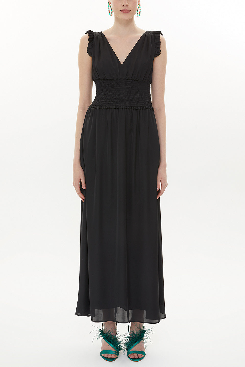 Black Elastic waist V neck sleeveless maxi dress 93348