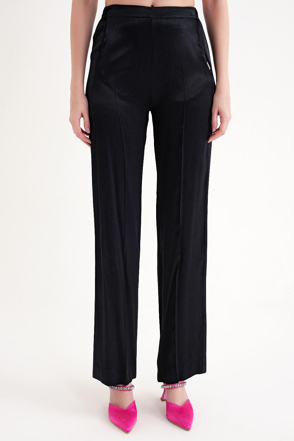 Black Elastic waist wide leg trousers 41658