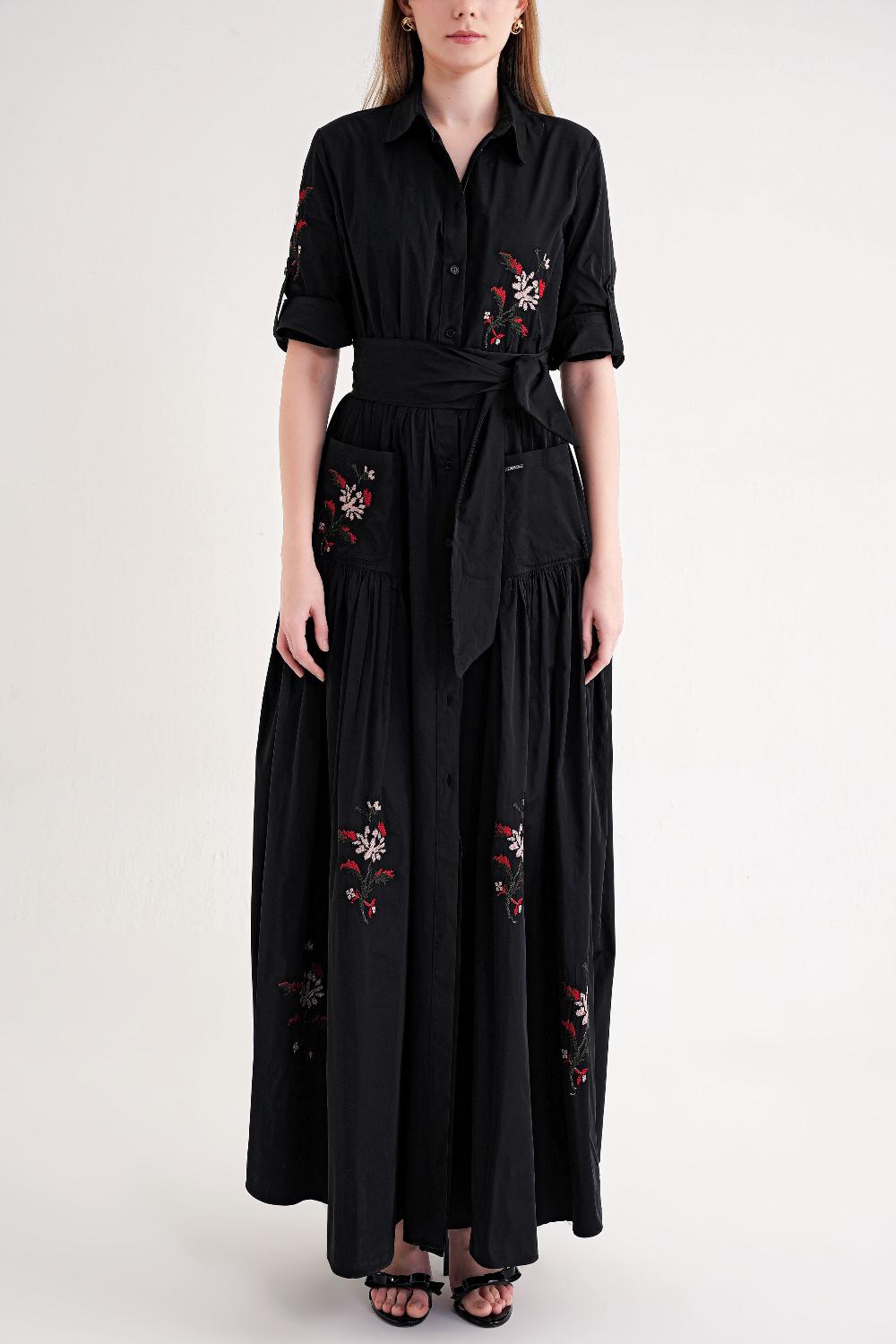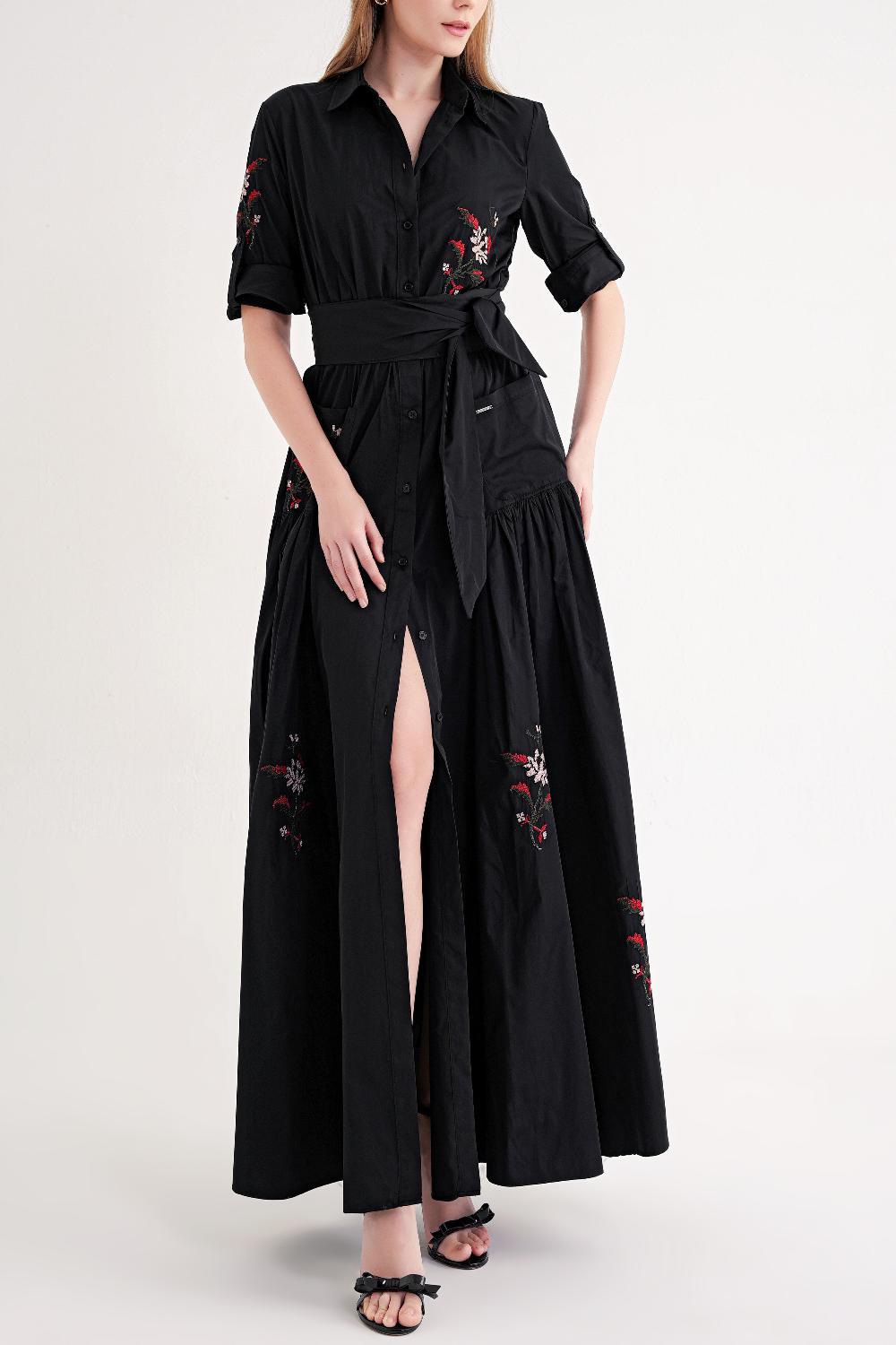 Black Embroidered maxi taffeta dress 94643 RPT