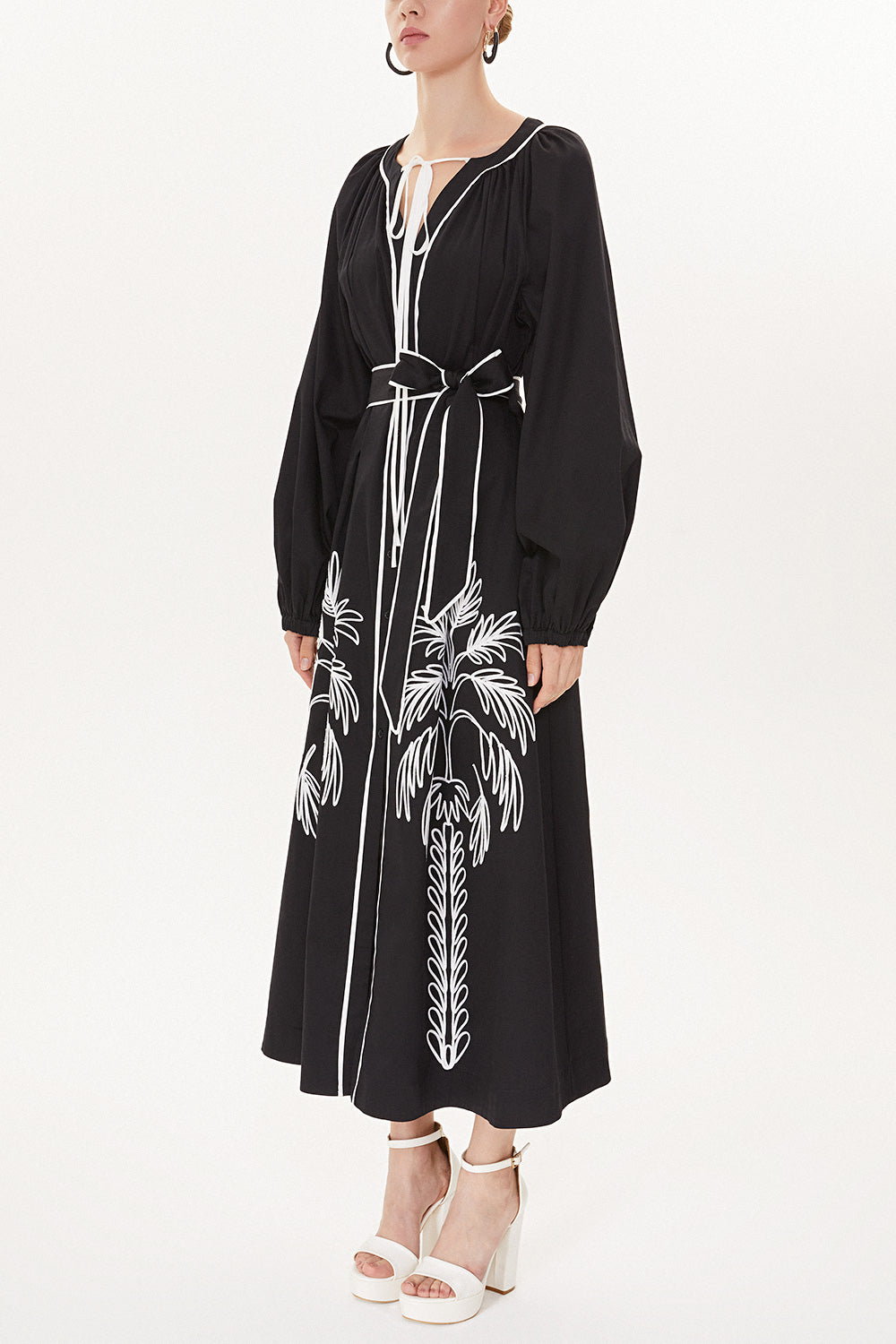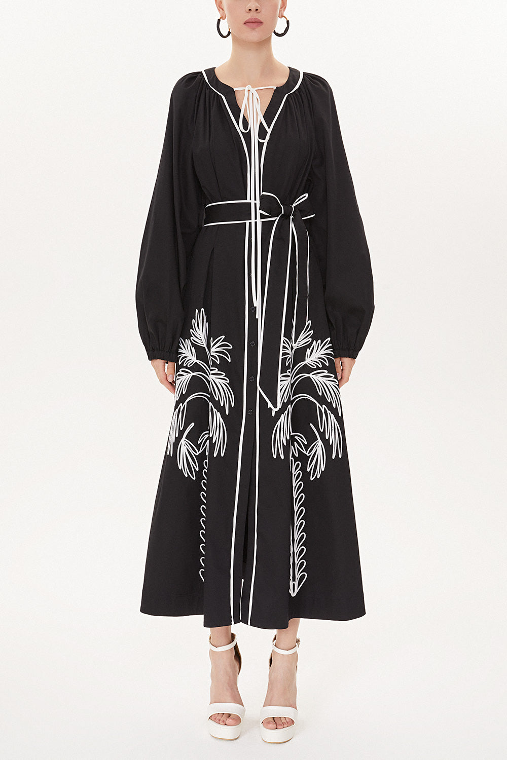 Black Embroidery detail long sleeve dress 93438