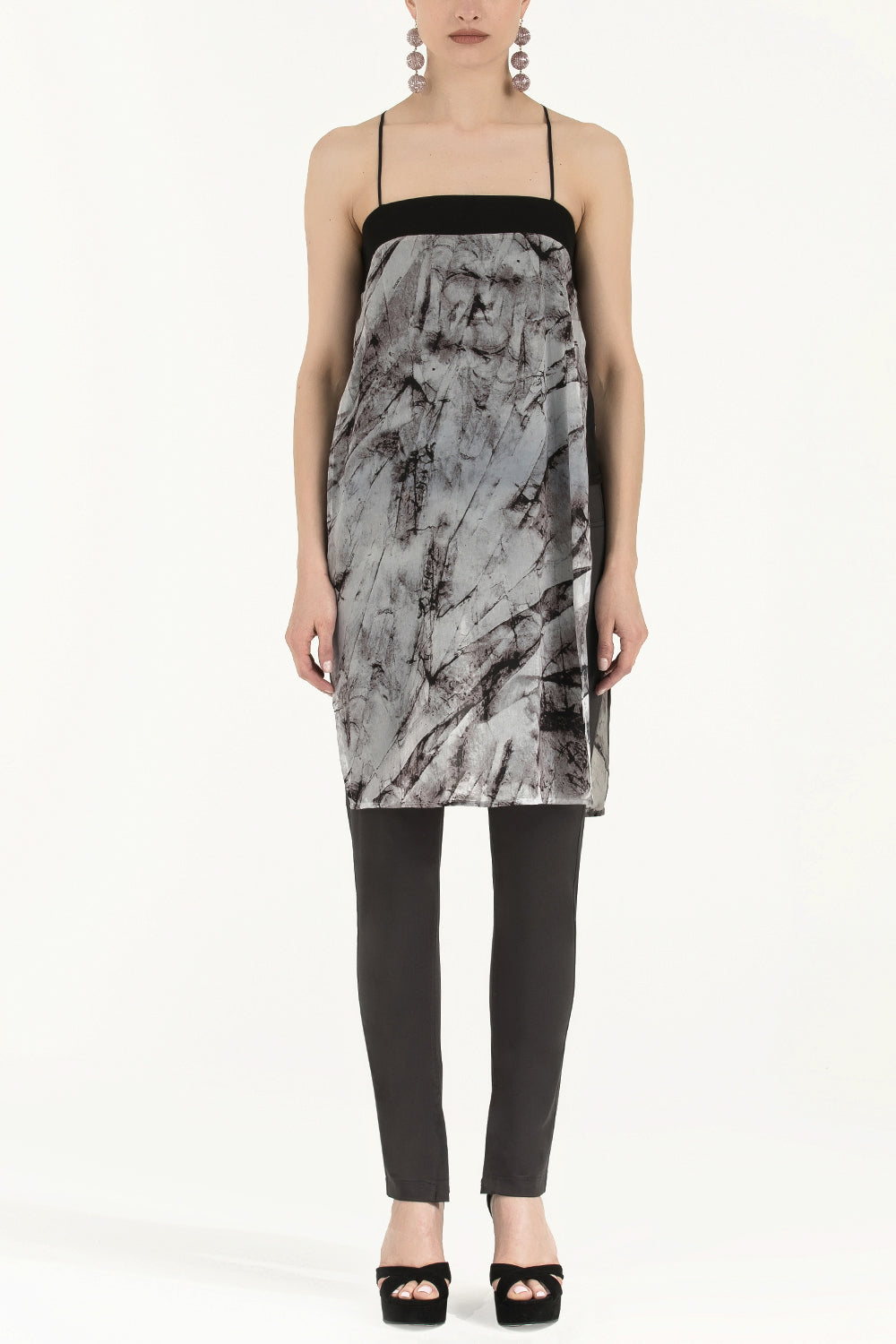 Black Faux suede mix sleeveless chiffon blouse 19398
