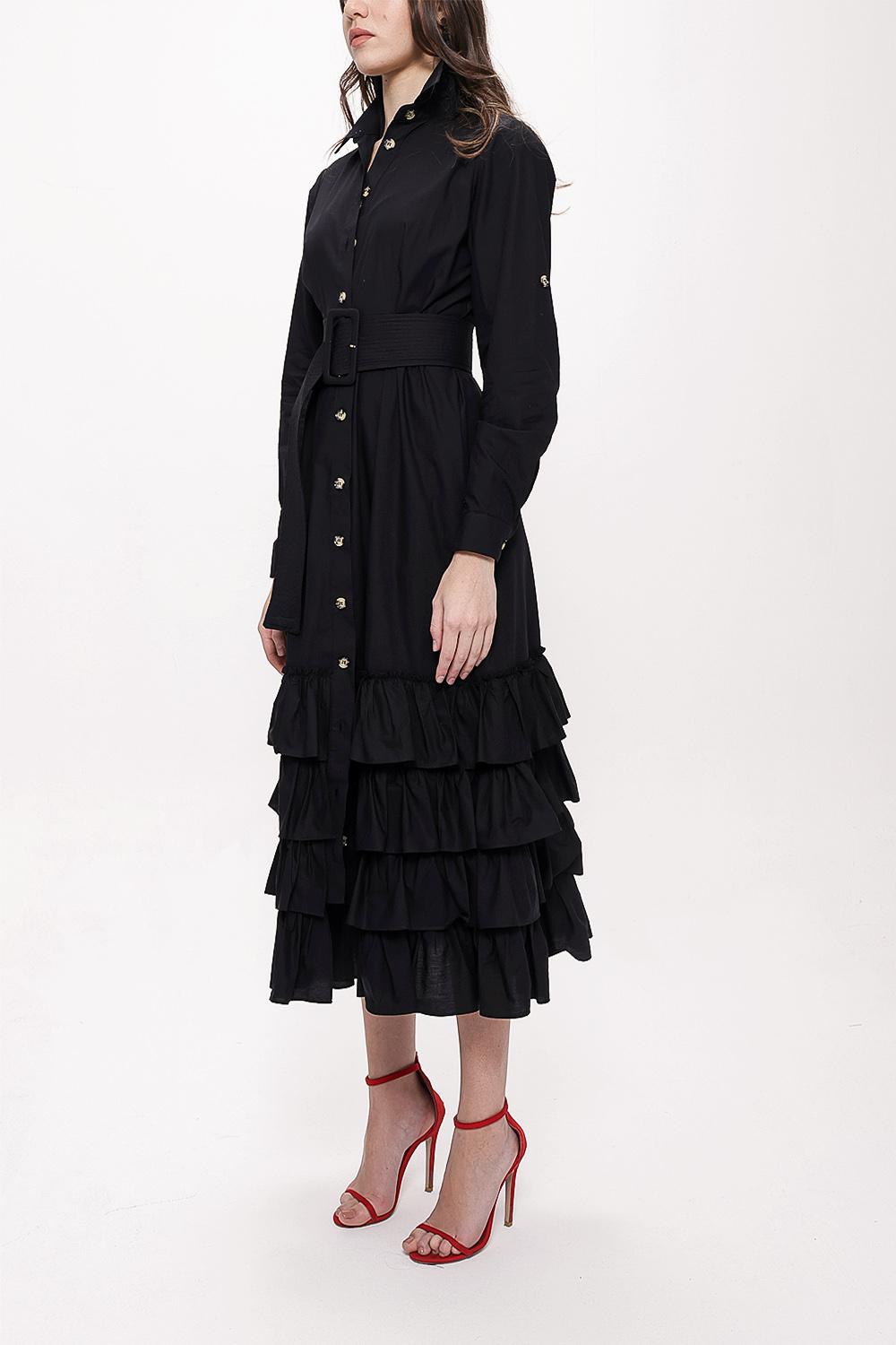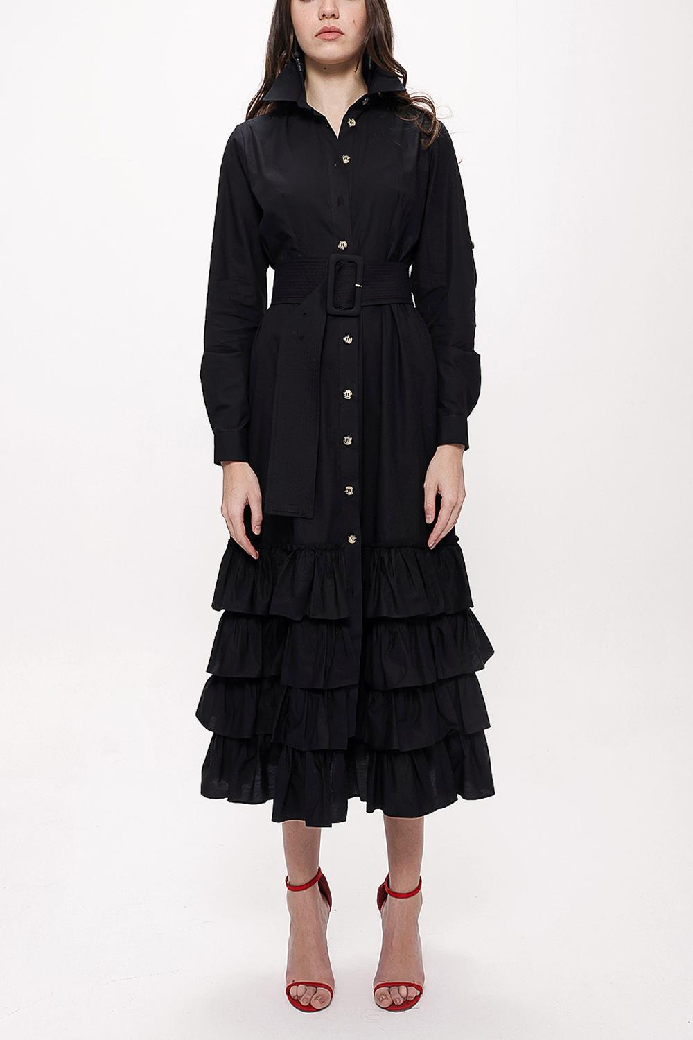 Black Fırılled long shirt dress 93979