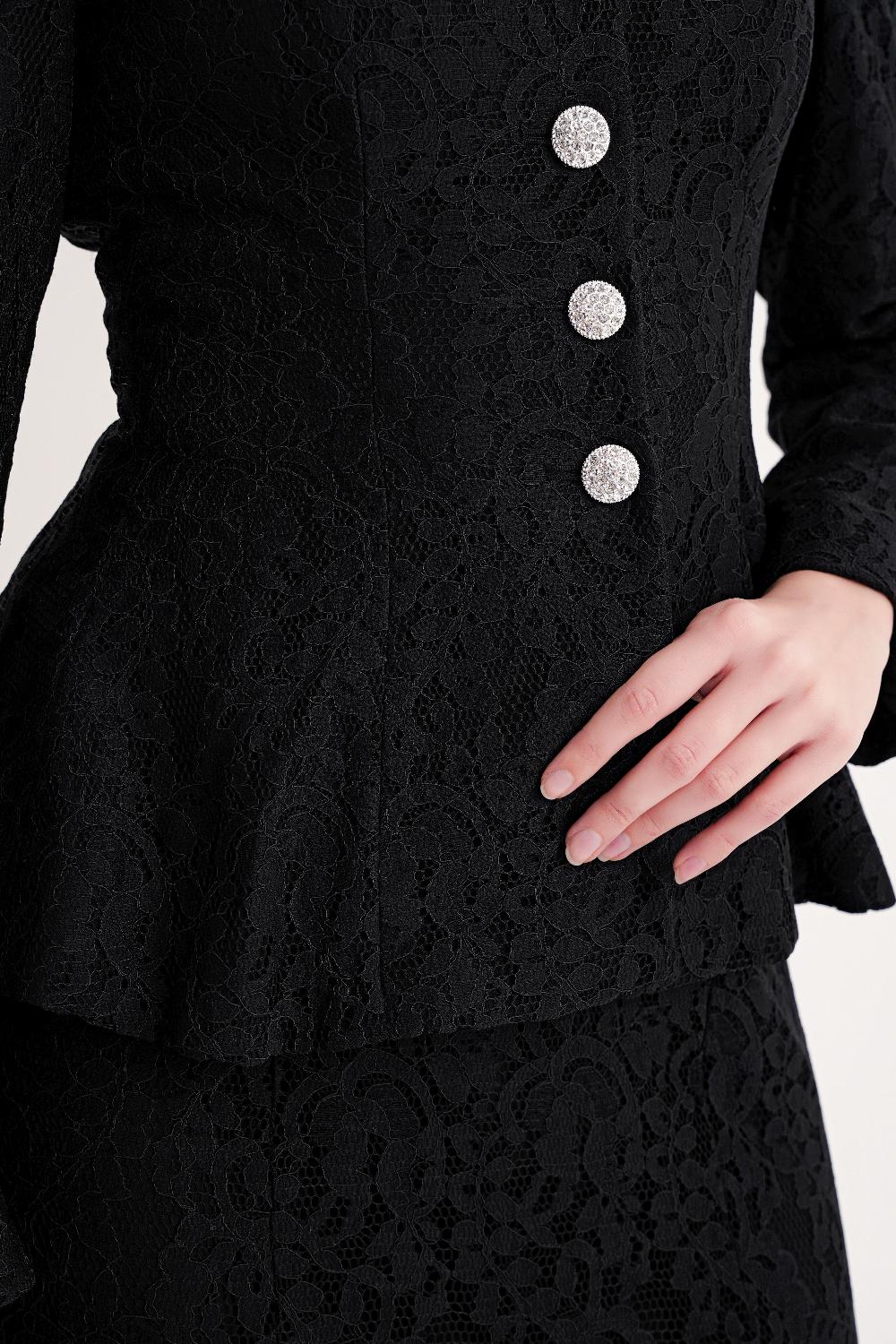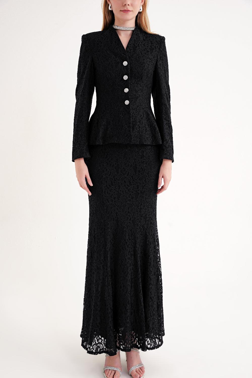 Black Fitted jacket and high-waist skirt suit 12372