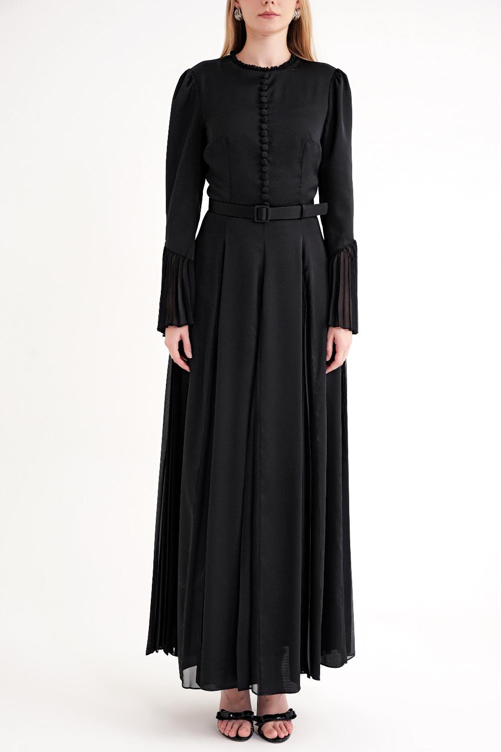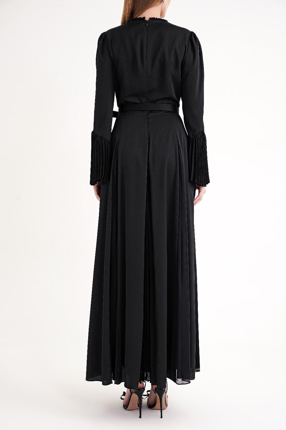 Black Fitted pleated long dress 94704