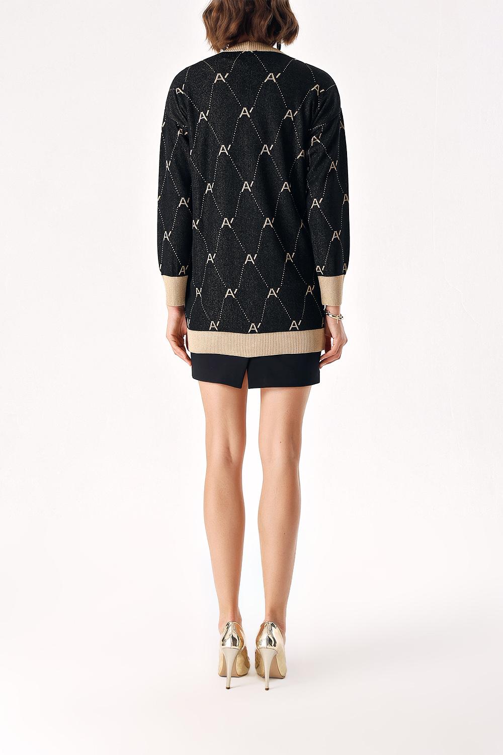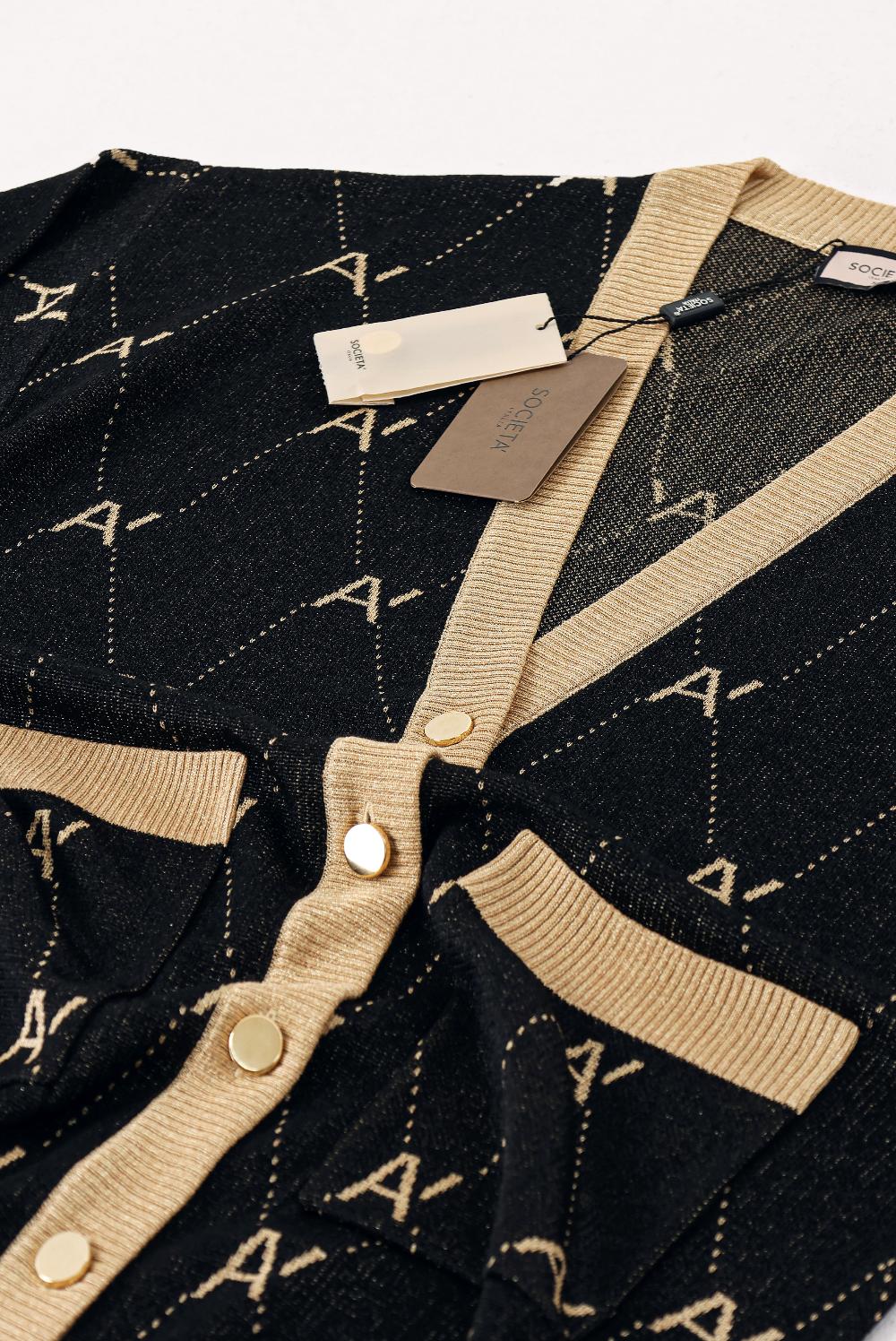 Black Gold short sleeve blouse and long shiny cardigan twin set 28856