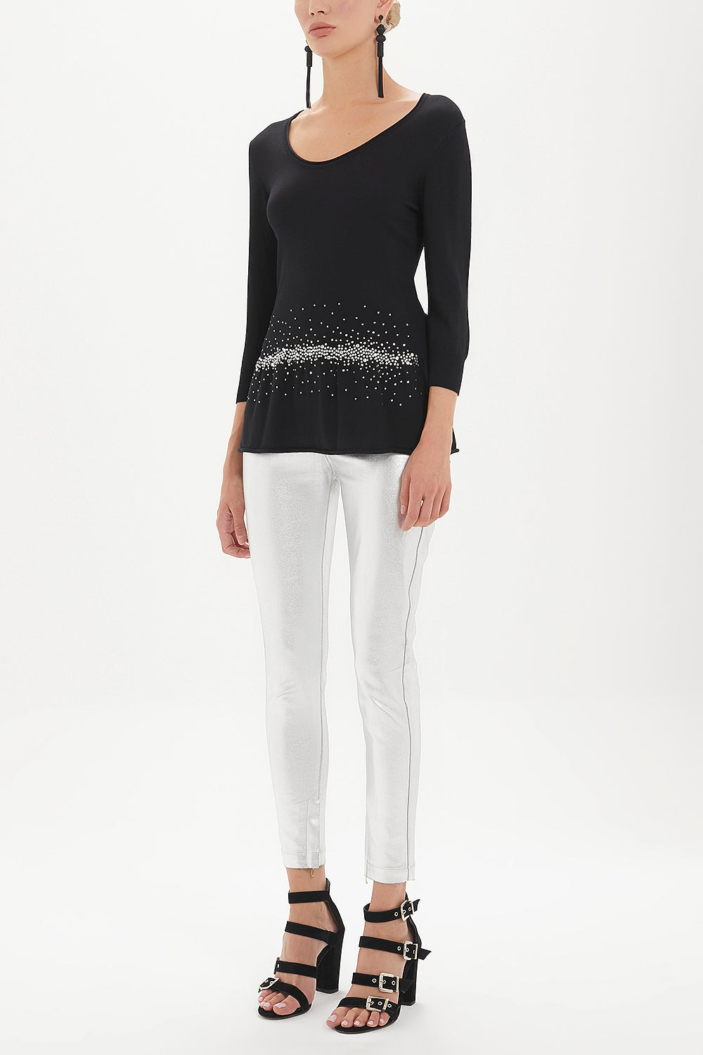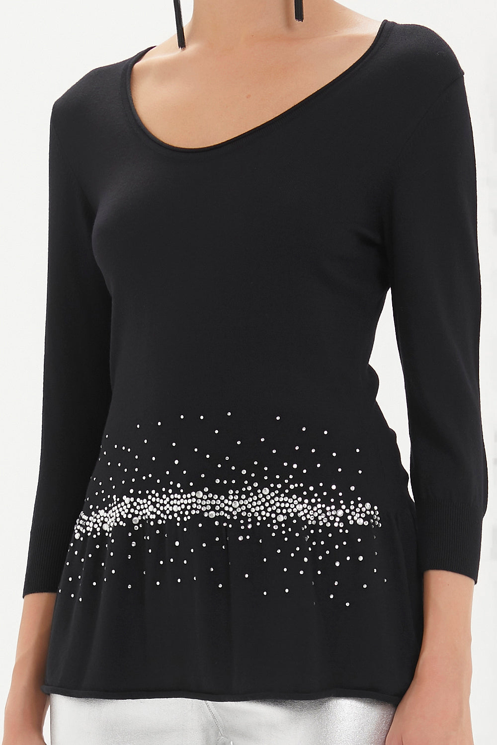 Black Knitwear top with gem details on the waist 28487