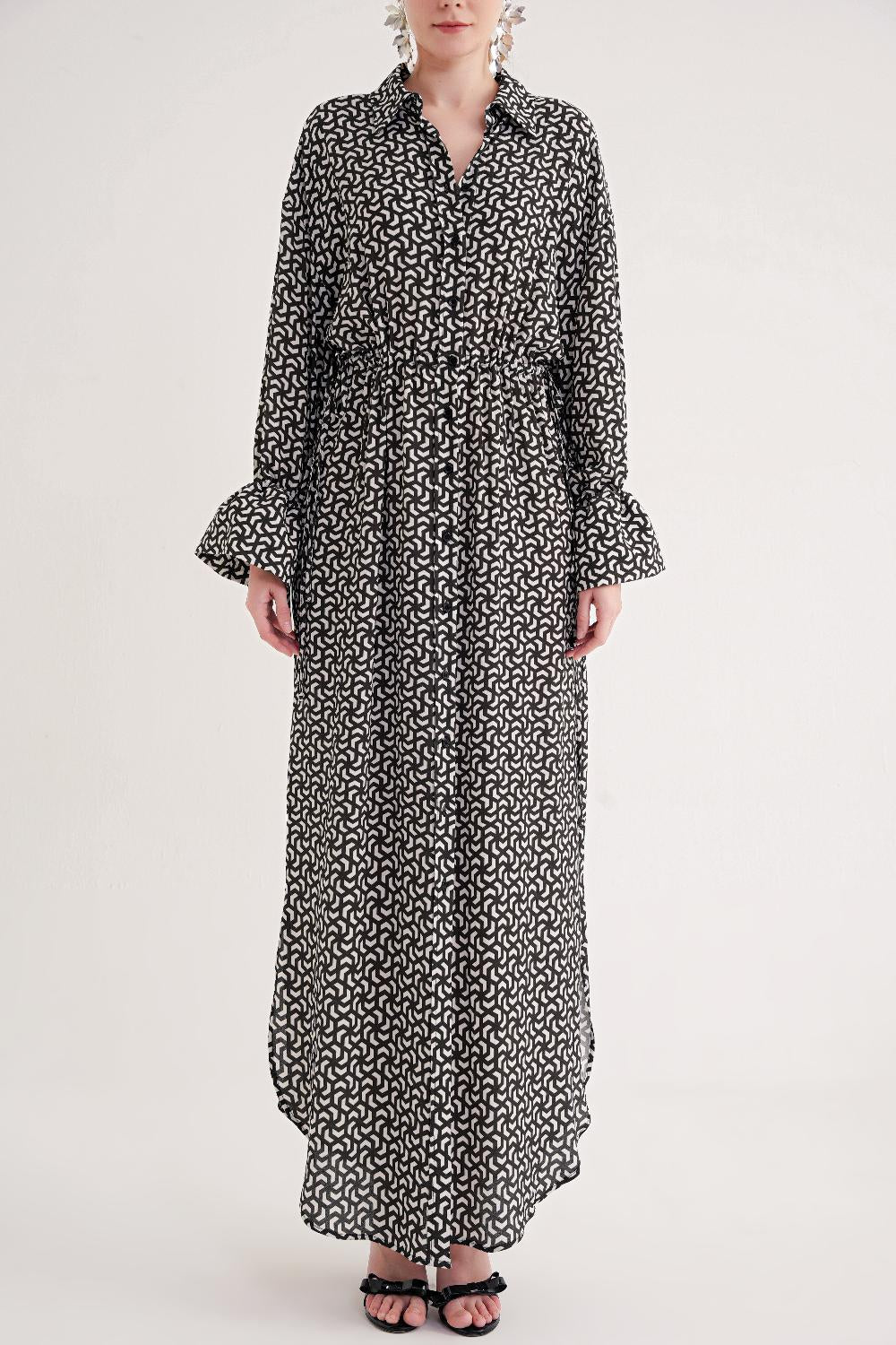 Black Lace detailed shirt dress 94564