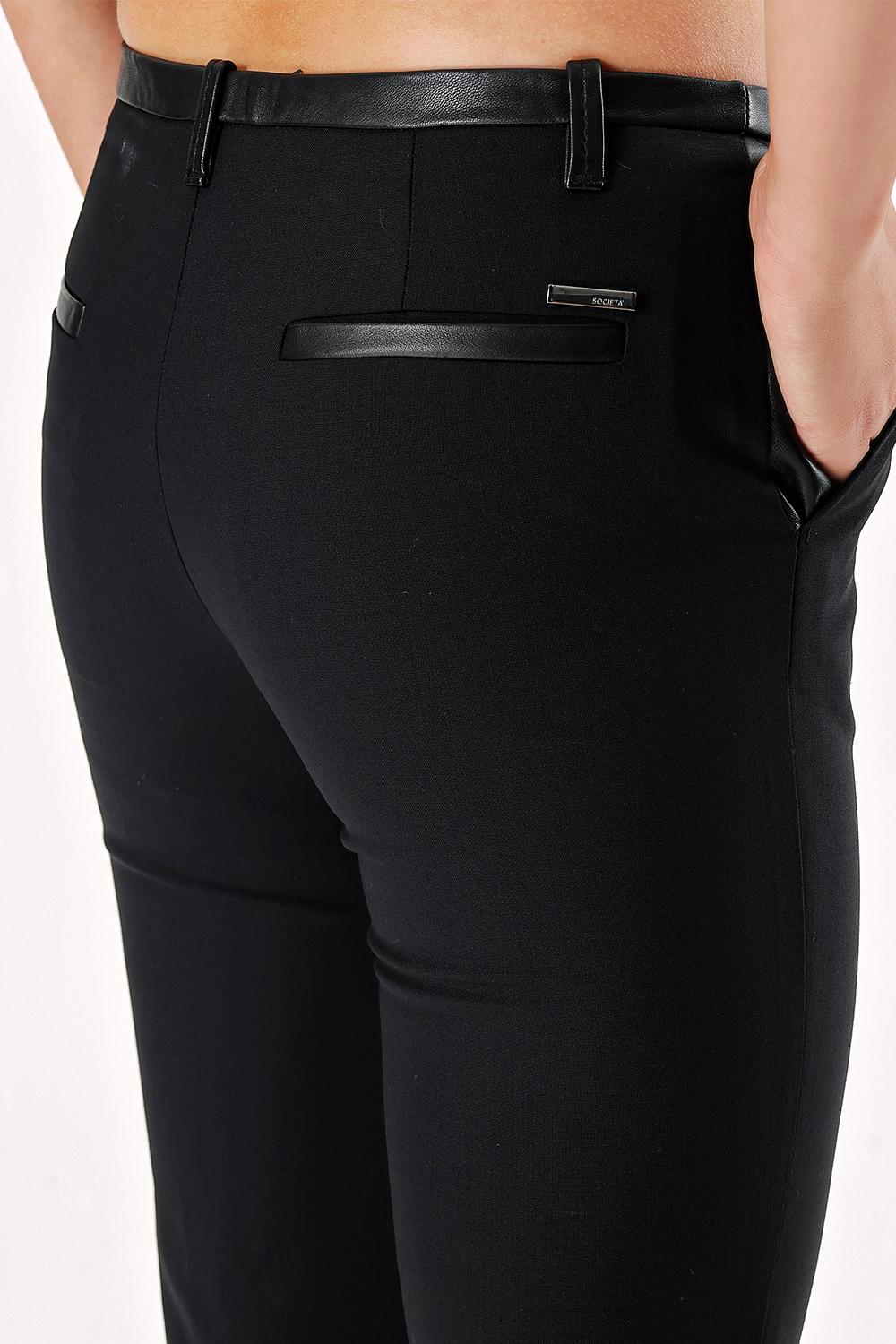 Black LEATHER DETAILED TUBE LOT WOOL PANTS 40942