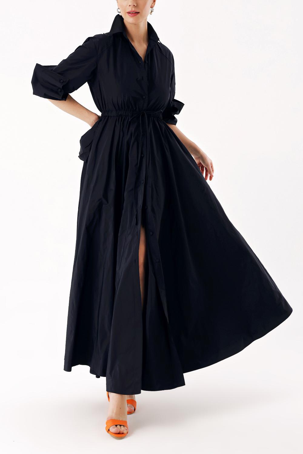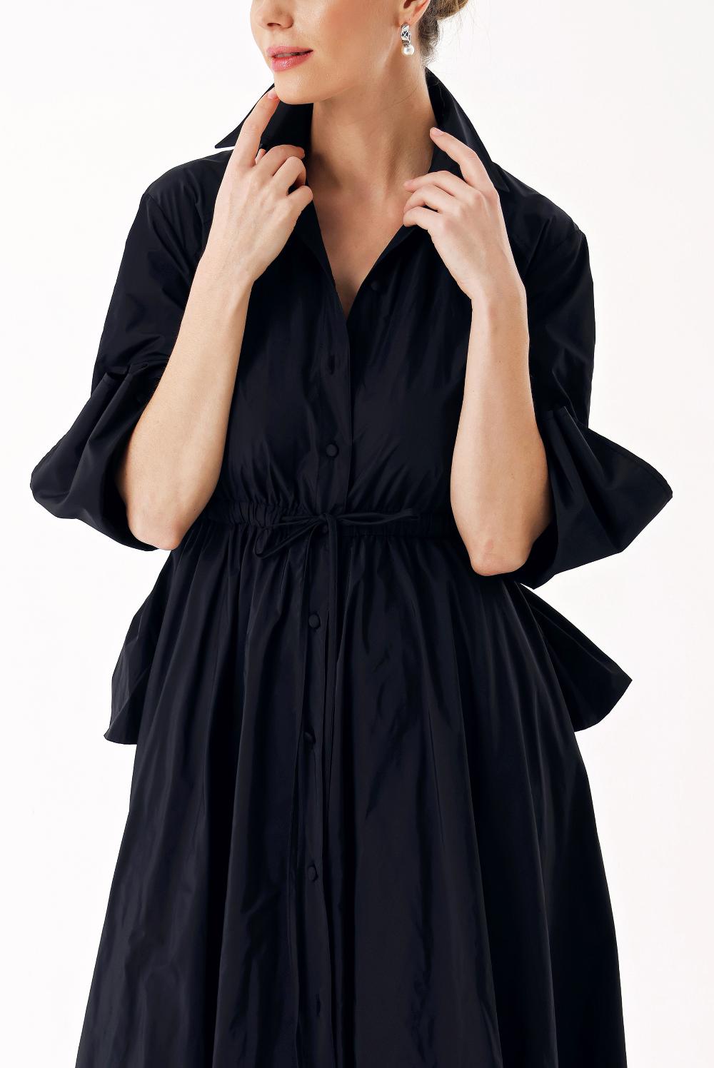 Black Long shirt dress with openable back detail and elastic waist 94392