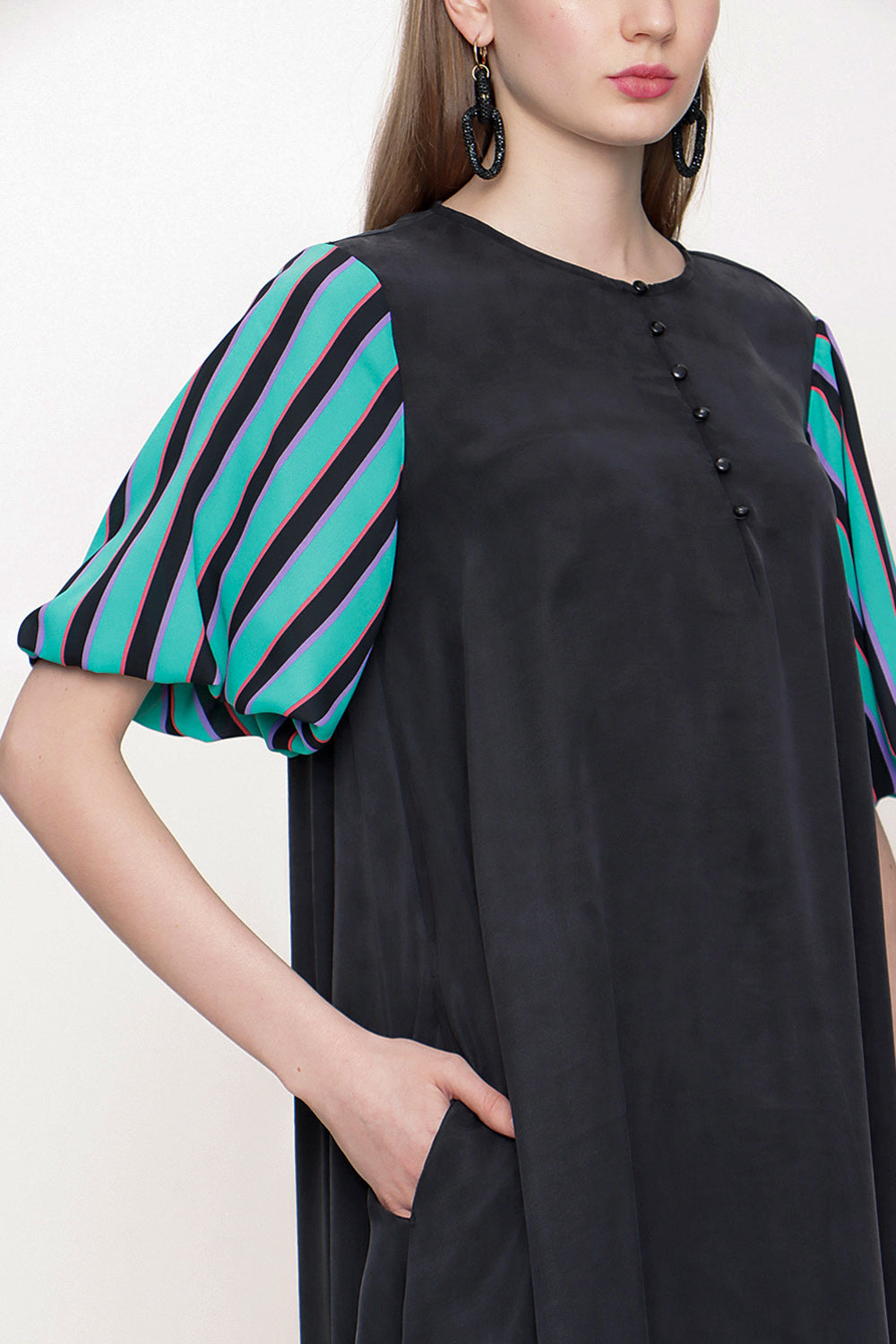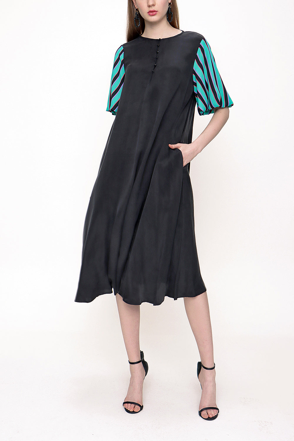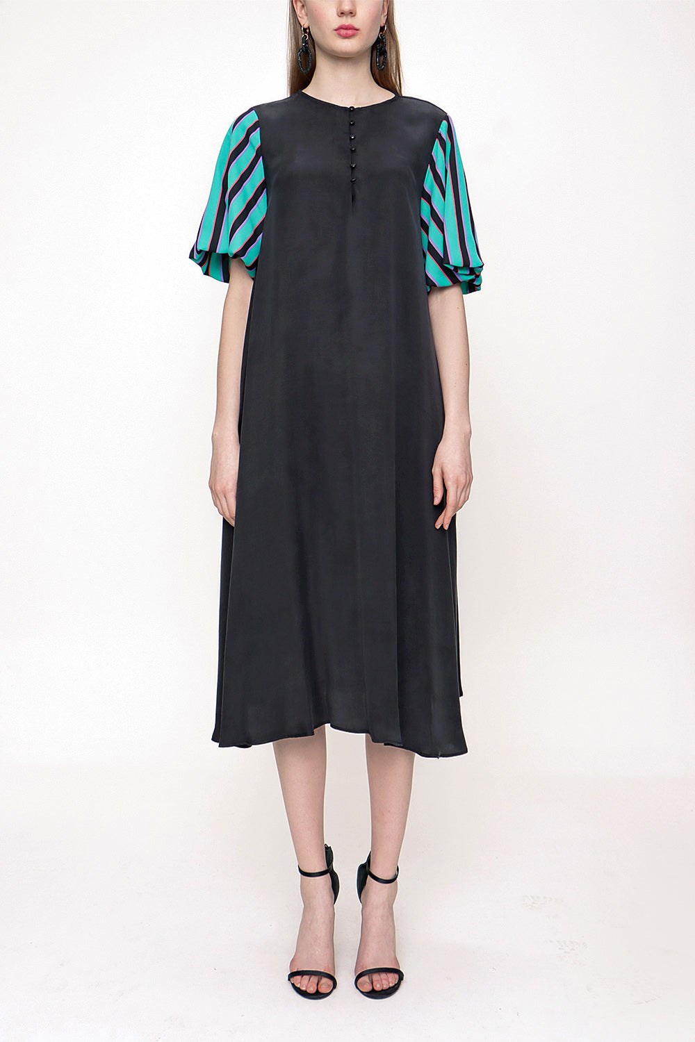Black Loose fit balloon sleeve dress 93395