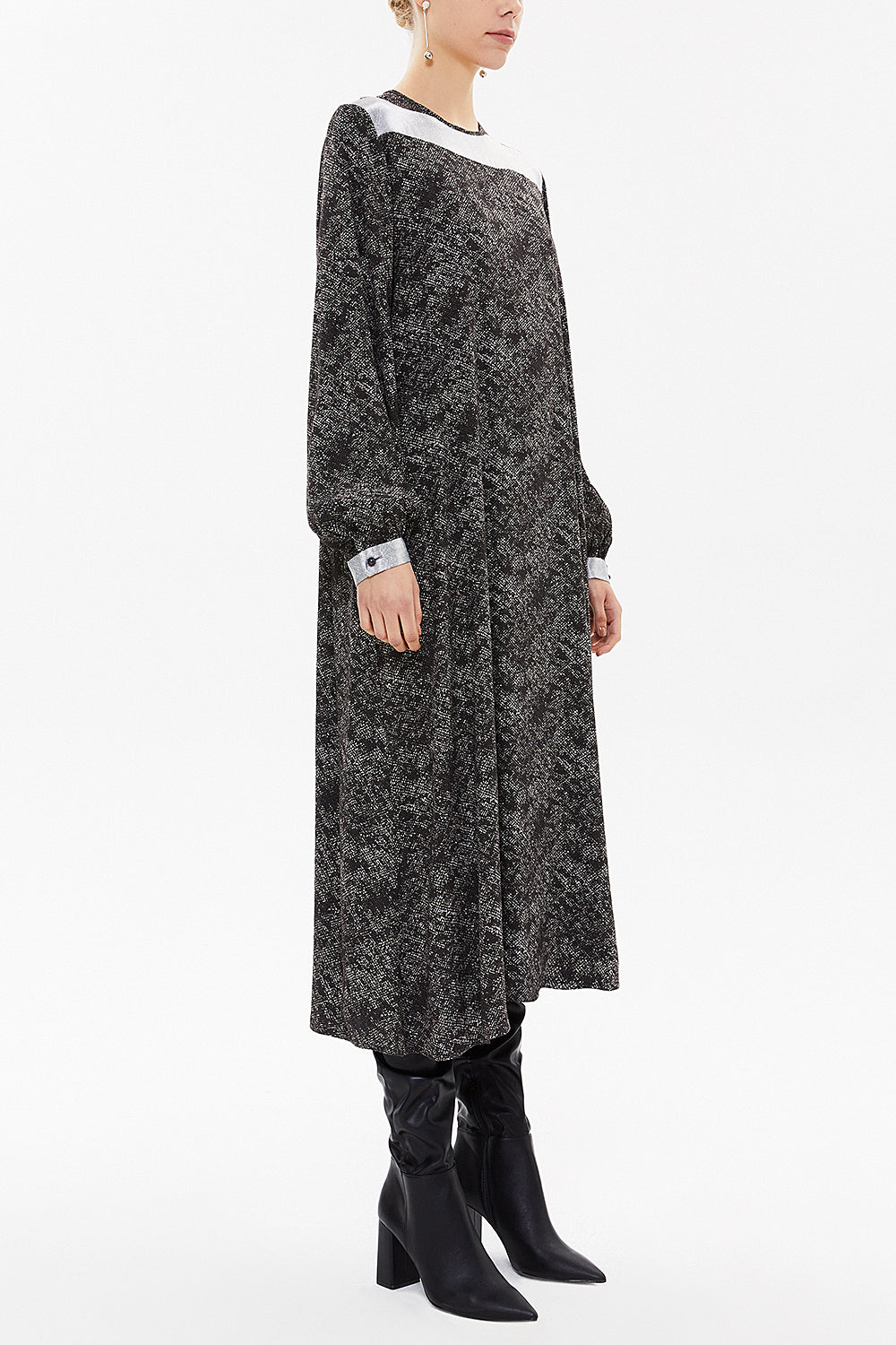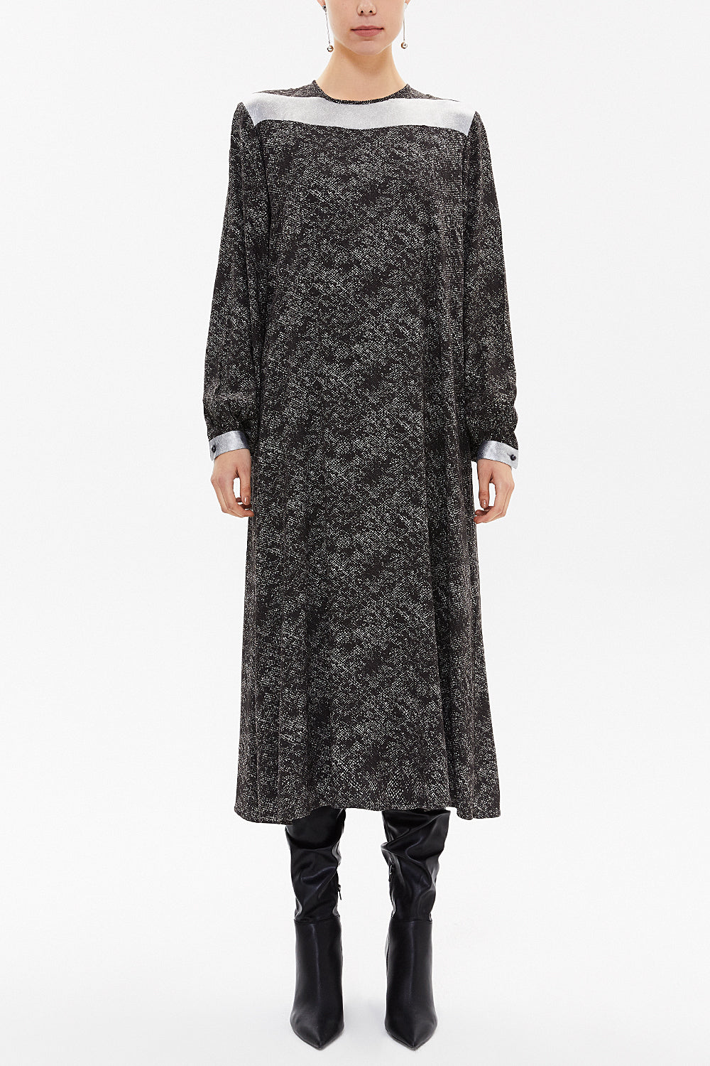 Black Neck detail midi dress 93071