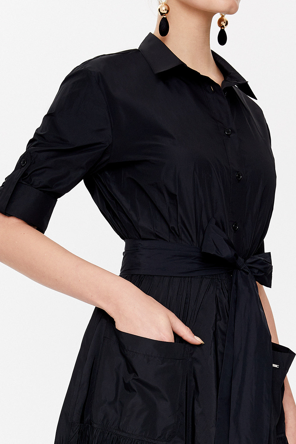Black Pleated maxi taffeta dress 93775