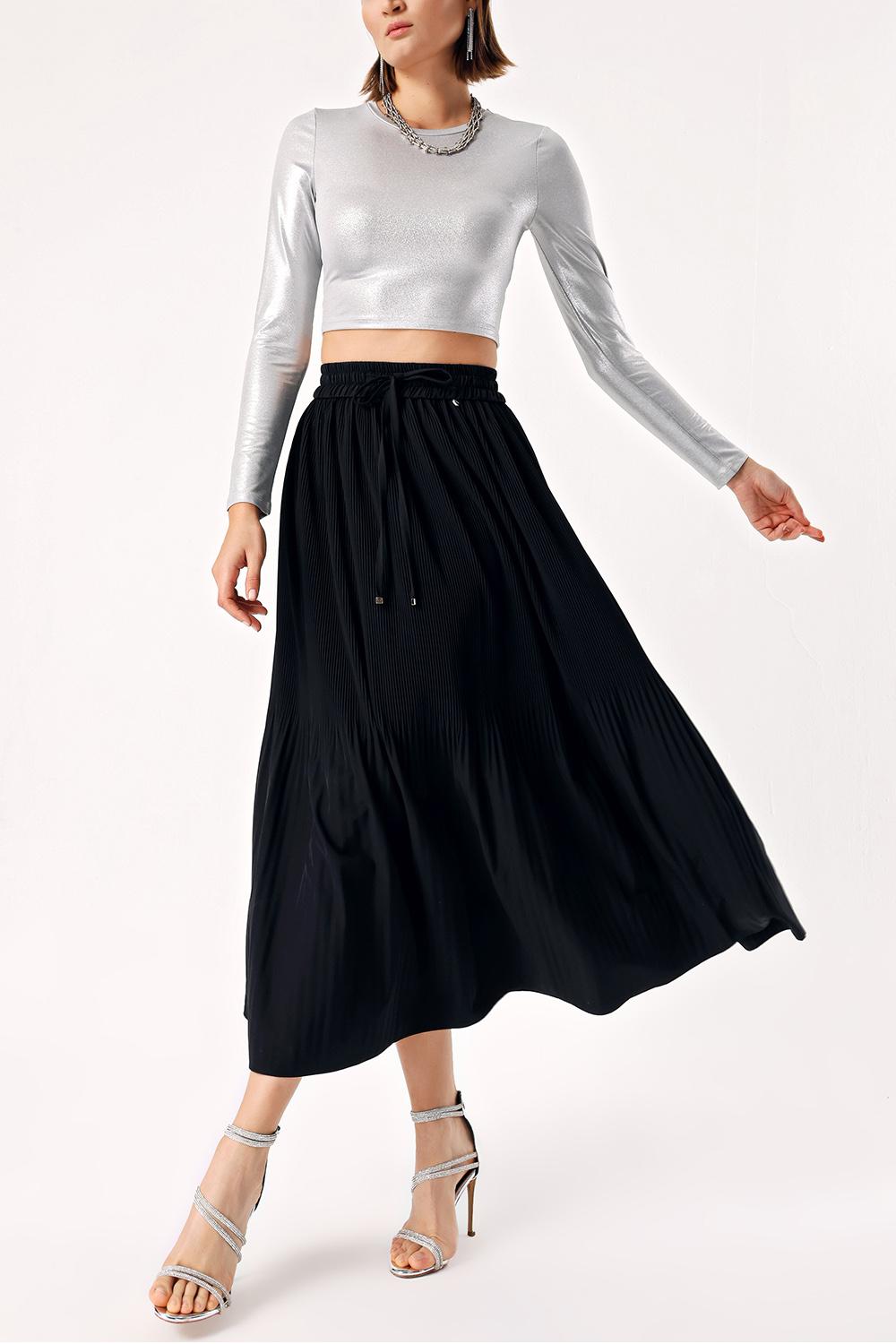Black Pleated midi skirt 81275