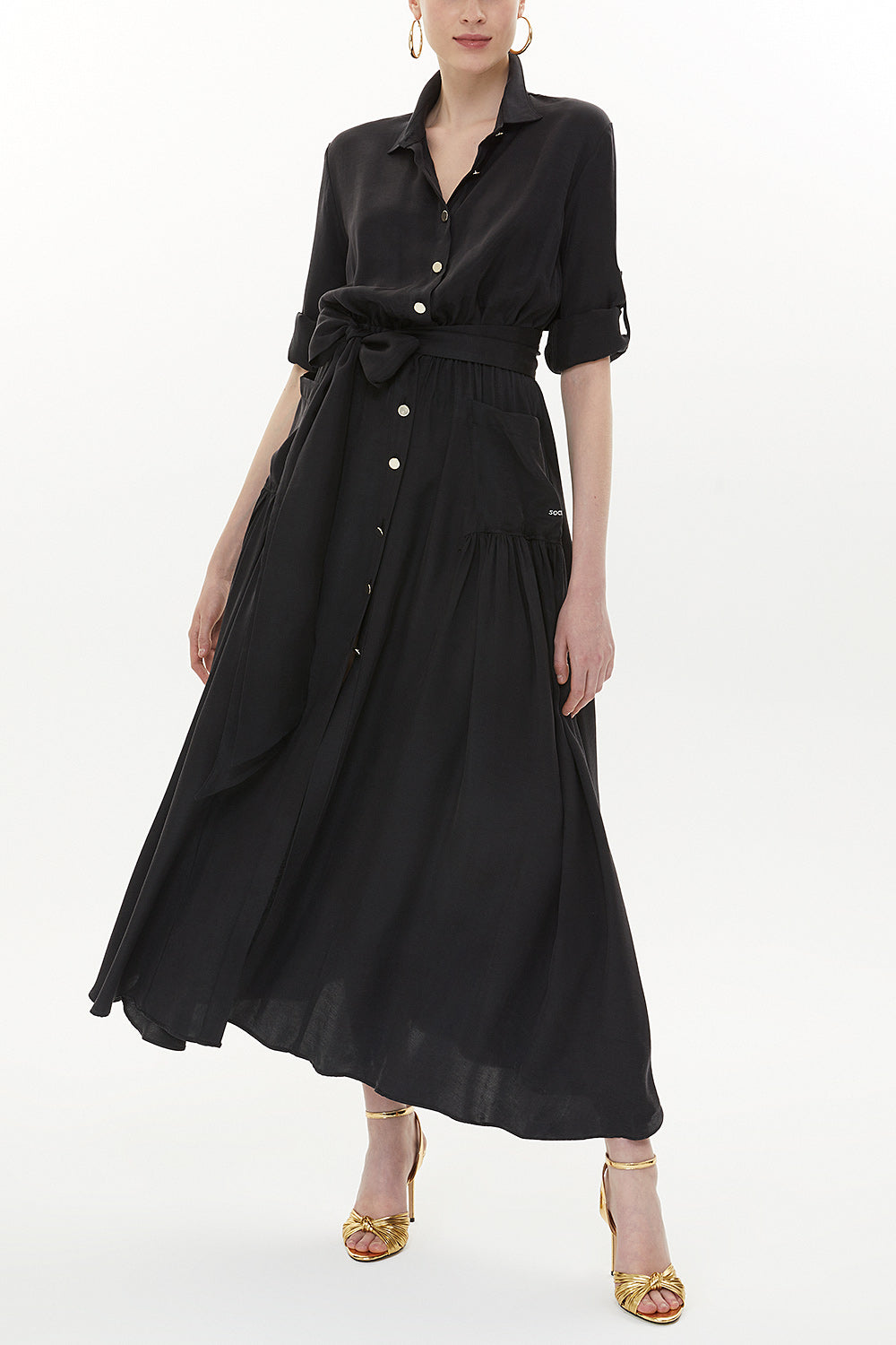 Black Pleated pocket maxi dress 93362